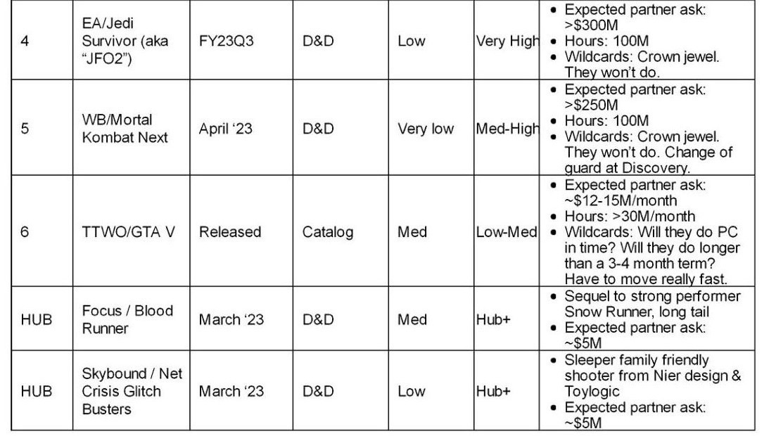此外文件还曝光了其他一些游戏首发进入XGP的预估成本,比如《博德之门3》为500万美元(约合人民币3650万元),《消逝的光芒2》为5000万美元(约合人民币3.65亿元),《哥谭骑士》为5000万美元(约合人民币3.65亿元),《刺客信条:幻景》为1亿美元(约合人民币7.3亿元),《自杀小队》为2.5亿美元(约合人民币18.25亿元),《真人快打1》为2.5亿美元(约合人民币18.25亿元)等等。