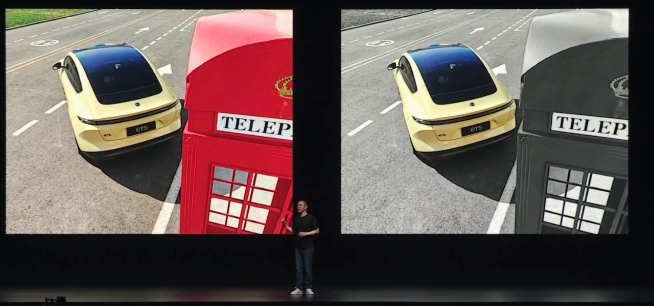 在相机里头,蔚来还给拍车整出了两个小活儿:焦点留色滤镜和飞驰滤镜。
