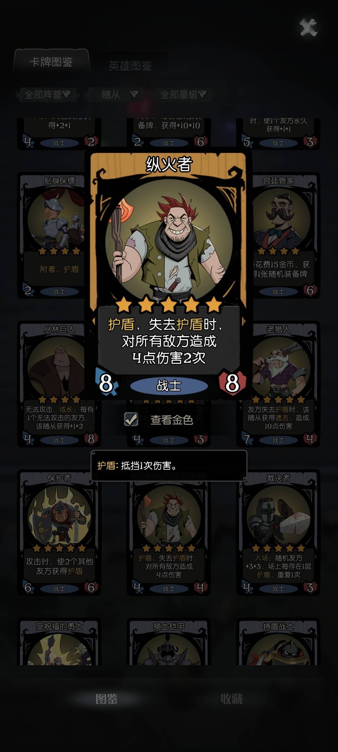 护盾:抵挡一次伤害,场上存在6星战士族随从—【持盾战士】或携带装备—【天使手镜】时,可同时存在多层护盾,纵火者的最爱;