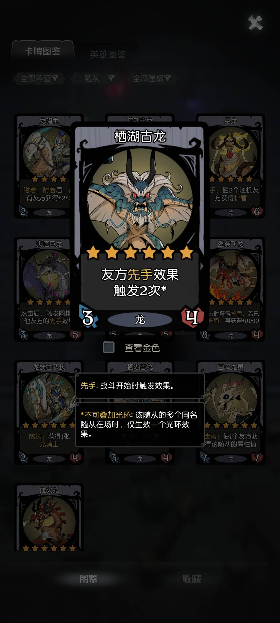 白古龙灵可以将自己的身材继承给友军,在实际战斗中我们是不需要它真正死亡的,所以一般放在第二排2号位。