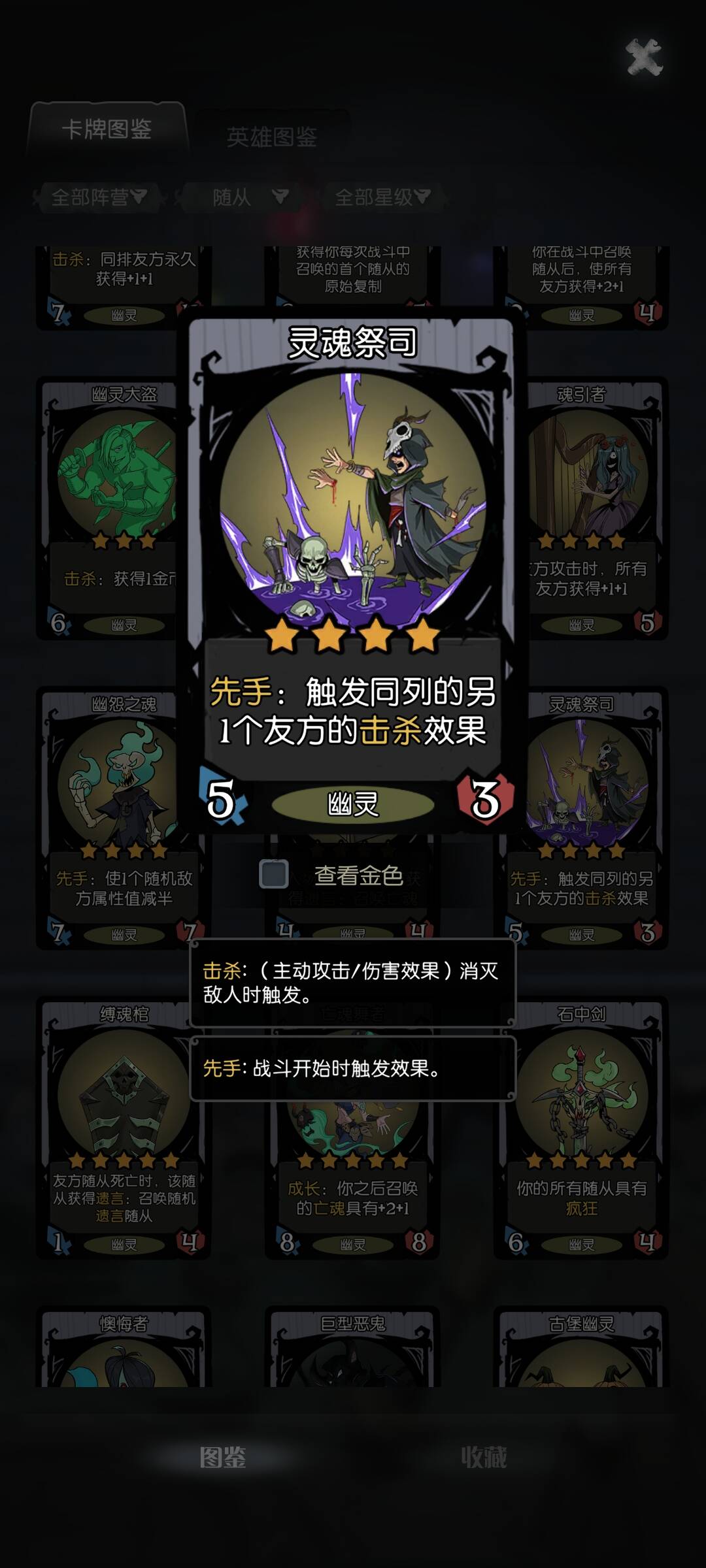 3本幽龙和4本灵魂祭祀组合放置在同一列,可以在战斗开始时“先手”触发触发一个友军的亡语效果,而当我们需要触发的亡语随从就是它——白骨龙灵