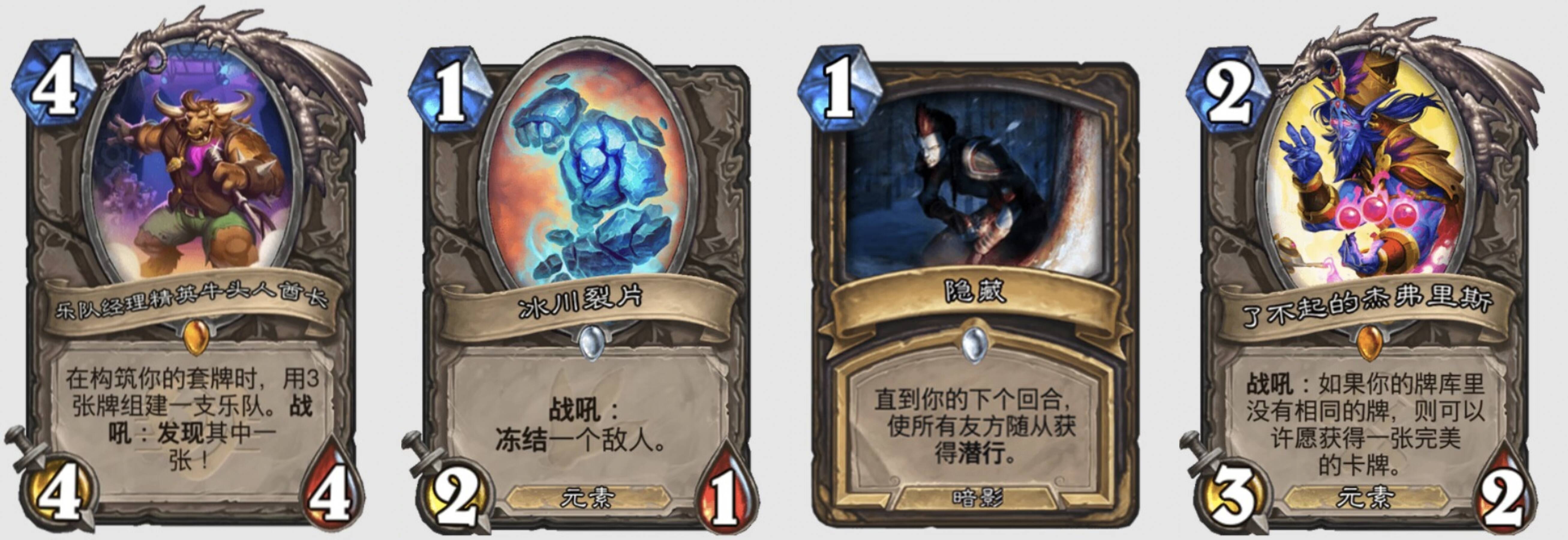 芬利是可选单卡,但在这套卡组中表现欠佳。和通道同屏会显得卡手,并且本身是随从不是法术,有可能影响到刷法术减费和随从检索。