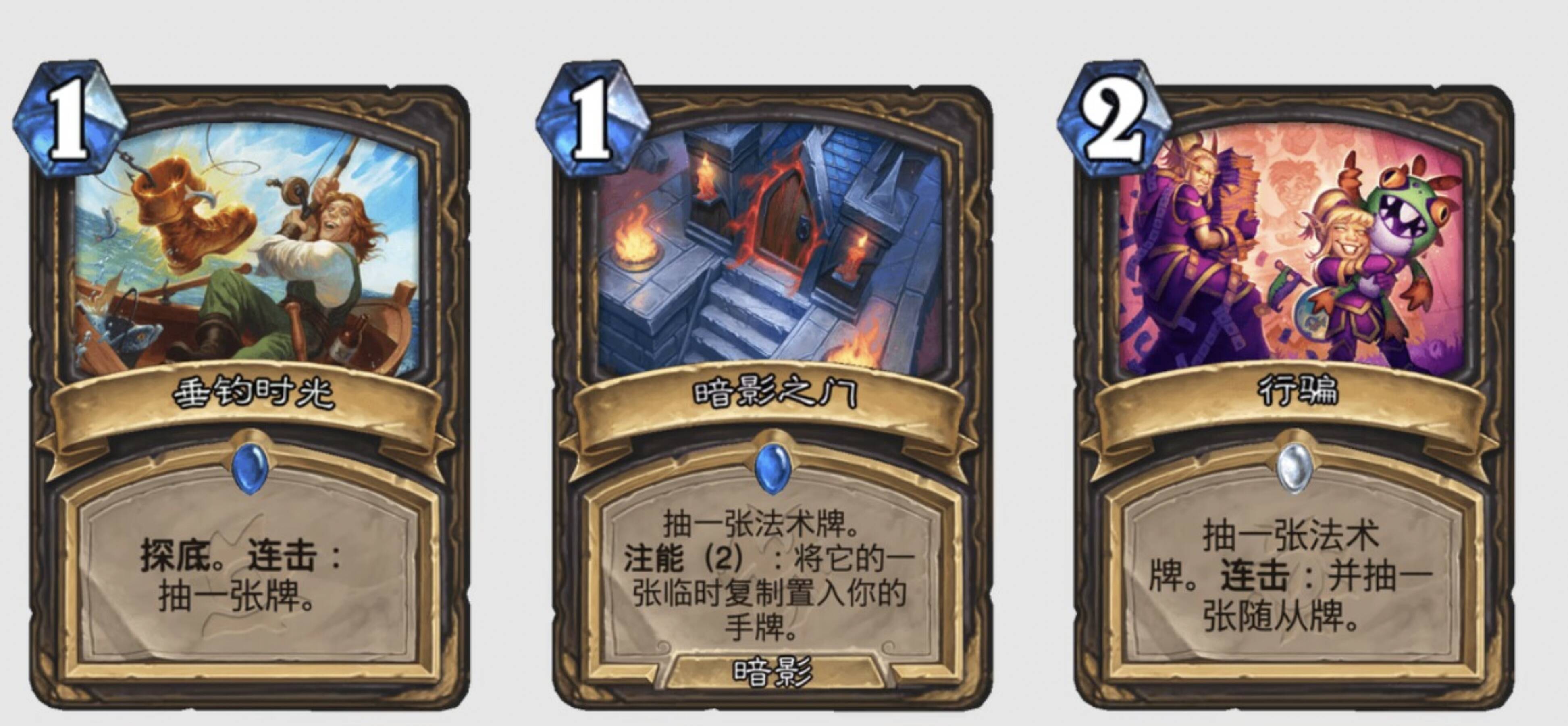 - 过牌节奏以秘密通道为绝对核心,在上手前必须全力法术抽滤寻找秘密通道,上手后一般保留三点费用打出较为稳妥,不过也需要根据场面以及手牌综合考虑。