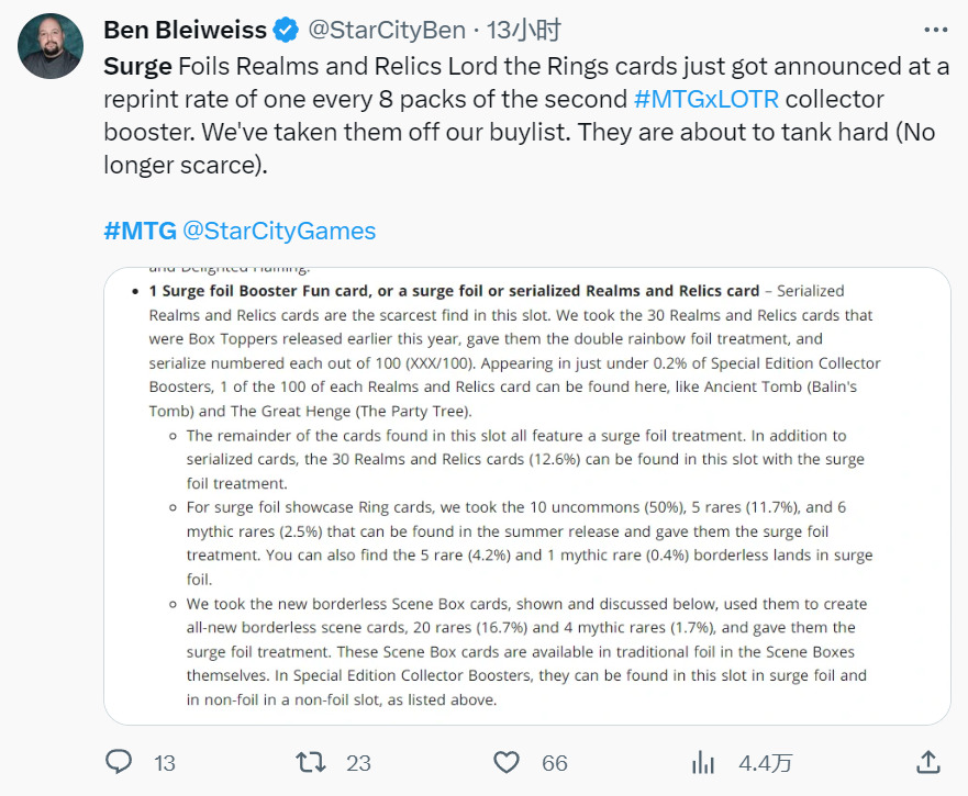 来自Starcitygame的销售主管Ben Bleiweiss表示,他们将不再收购这些潮涌闪,因为它们的出现概率将变为大概8包(聚珍特别版)一张。