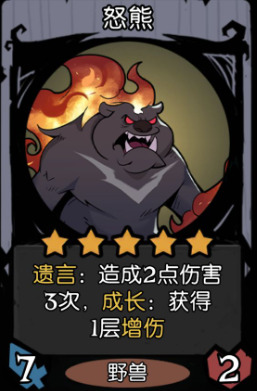 基本思路就是靠怒熊的遗言打伤害,机械套娃里面的怪打辅助,最好拾荒者养成一个大哥来压轴,伤害机制如图所示,可以给前排炸弹飞艇架上嘲讽来卖。后排机械套娃可以套怒熊或者其他强力随从或者自身均可,这里看发牌员给你发什么牌。如果有灵魂结晶和法力翡翠成长增伤给怒熊挂上效果更佳。