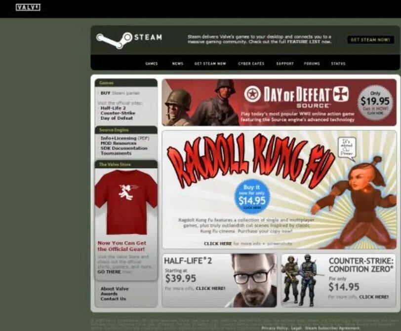G胖不信这个邪,既然实体游戏存在如此大的成本,那么转为数字游戏岂不是省去了众多成本。说干就干,2005年,Steam第一次上线非Valve的游戏,名为《Rag DollKong Fu》。