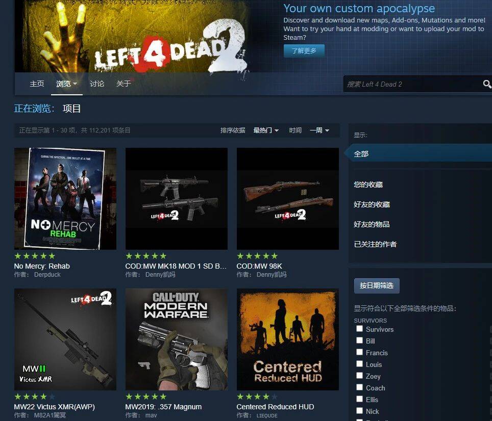 每款游戏的社区都有着大量的玩家讨论,玩家在购买了一款游戏之后,就可以访问一款游戏专属的创意工坊了,创意工坊中有大量游戏专属的内容,比如各种同人艺术品,各种Mod等等,安装也是**式一键安装,完全不需要借助其它工具。