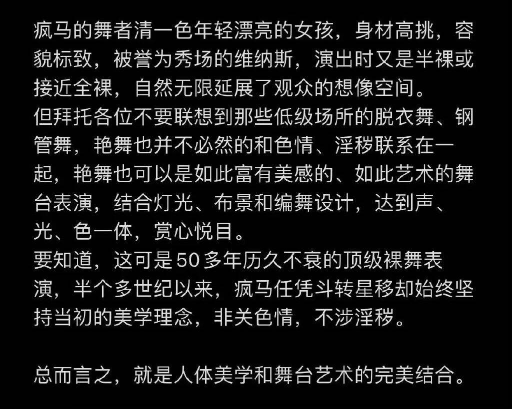 谅是经常浏览橙黑网粉红软件的大伙,应该也有不少人头一次听说“疯马秀”这个词,就是因为她官宣的这件事,甚至是看到这篇文章才知道的。