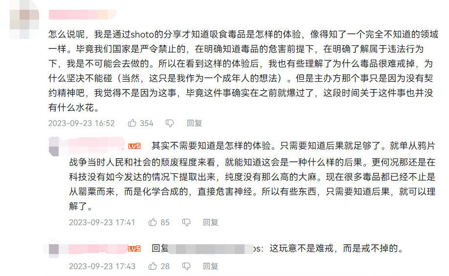 而以下,是在被**重创过、多年持续推行强硬禁毒教育国度中长大的部分年轻人的言论。