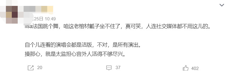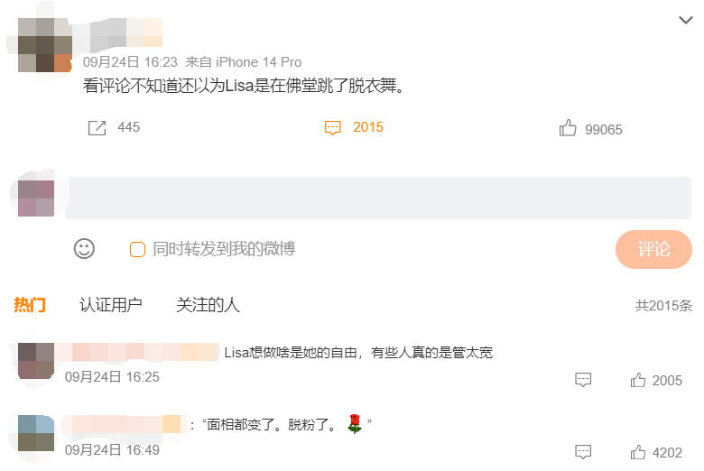 你没看错,平时在wb上对着跟“色”毫不相关的普通妹子照片或者二次元形象大喊“男凝!”的部分主张“女权主义”的粉丝,开始给她甚至脱衣舞本身洗地了。(有部分标榜“为女性发声”的公众号也公开发表过声称“反对LISA去疯马秀也是一种荡fu羞辱”“脱衣舞娘打破了多年来的父权霸权”这样的观点,由于曾经一觉醒来被打成过“精神男人”,咱此处不放出处)