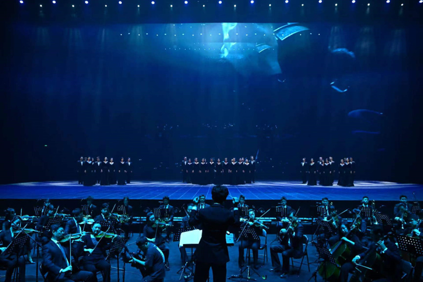 各声部汇聚一处如河流一般奔腾向前,气势恢宏,灯光在各类乐器上闪耀,声音和画面交相辉映,堪称视听盛宴。