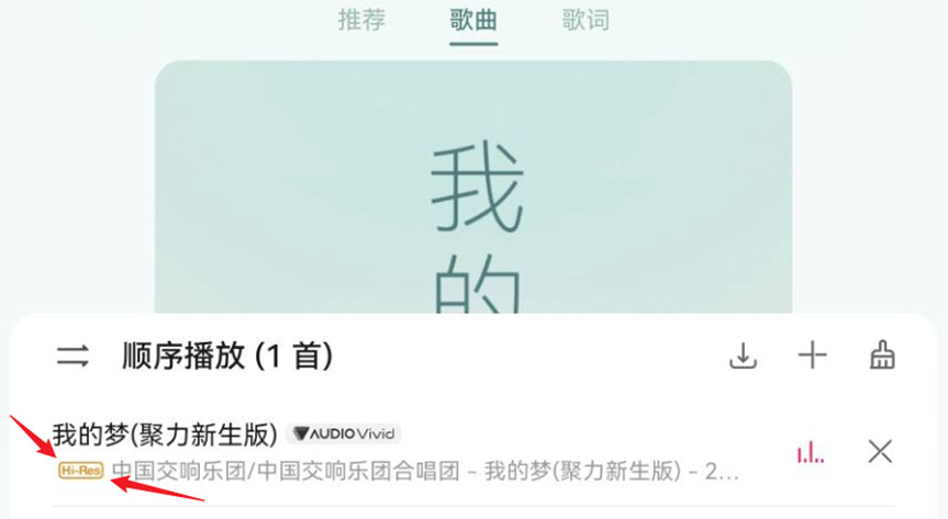 本以为,相比3 年前的曙光版,今年《 我的梦( 聚力新生版 ) 》主要是编排上有些许不同,结果仔细观察了一下才发现,这首歌曲不仅支持无损及Hi-Res 音质体验,还有空间音频版本,似乎有点来头。