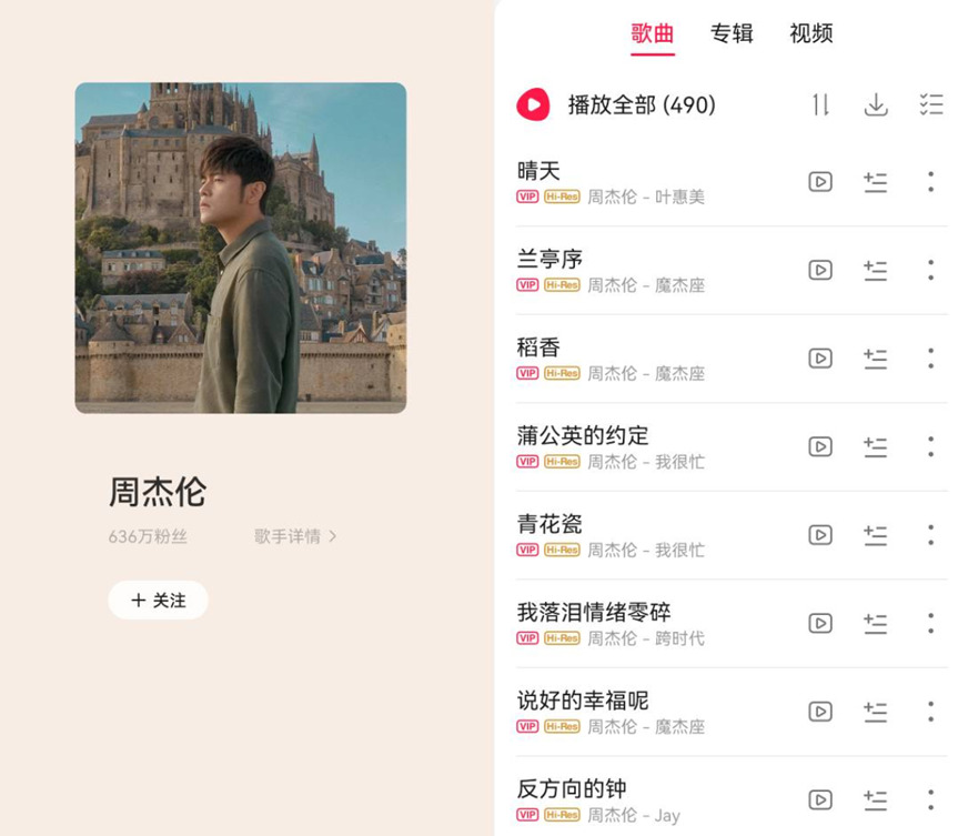 在华为音乐APP 浅刷了一下大家喜爱的热门歌手和歌曲,惊喜发现好多都有金色的 Hi-Res 小图标了,周杰伦、邓紫棋、周深、毛不易……