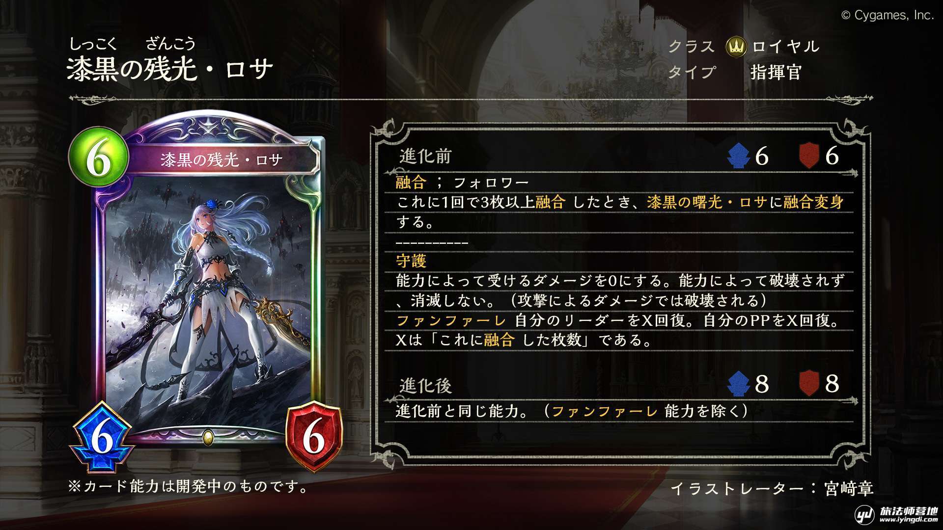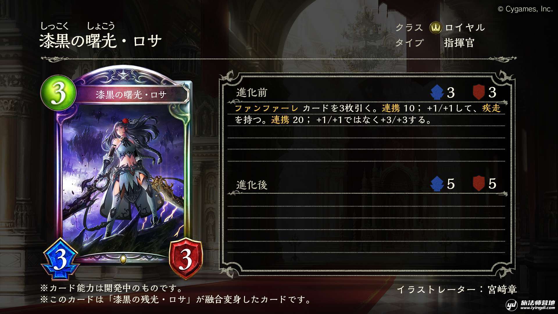 与这张卡片一次融合3张卡片以上时,使其融合变身为漆黑的曙光·罗萨。