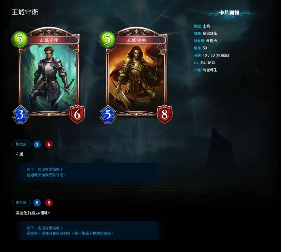 入场曲 召唤1个重装骑士到战场上。协作10;由原本的重装骑士转变为召唤王城守卫到战场上。