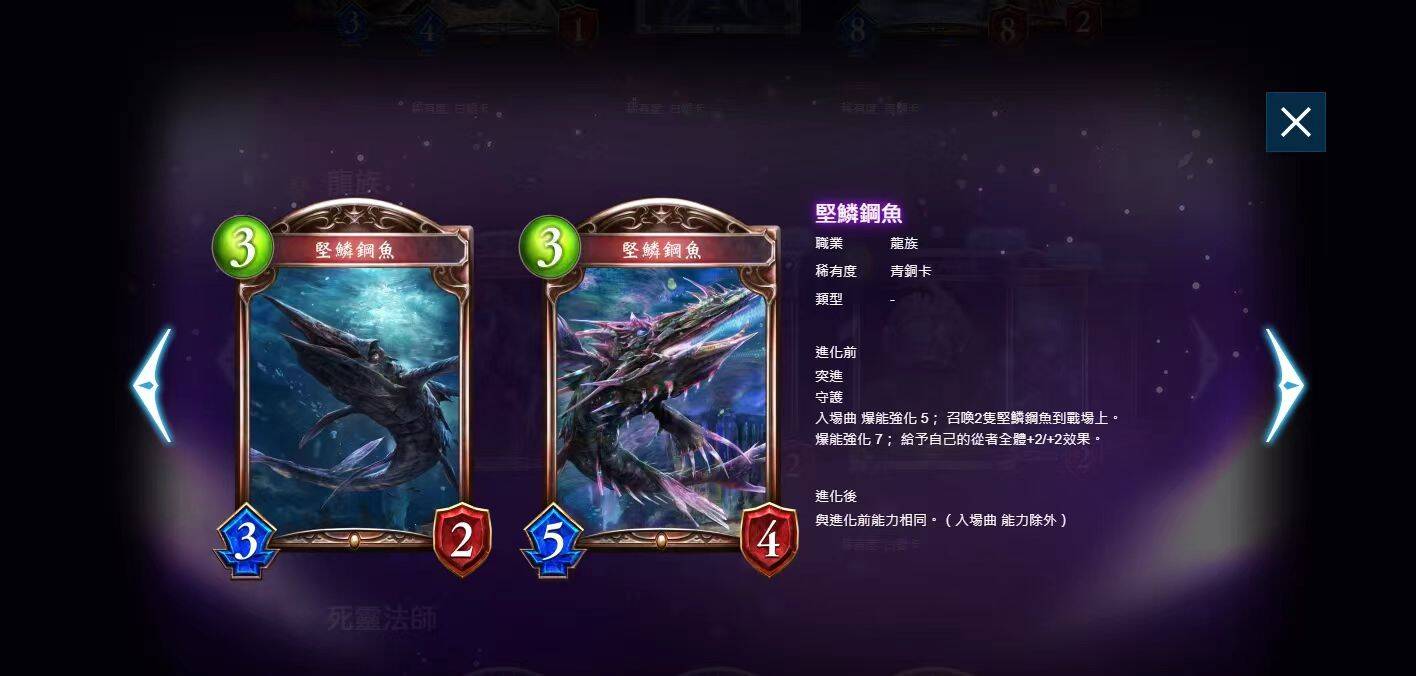 入场曲 爆能强化5;召唤2个坚鳞钢鱼到战场上。