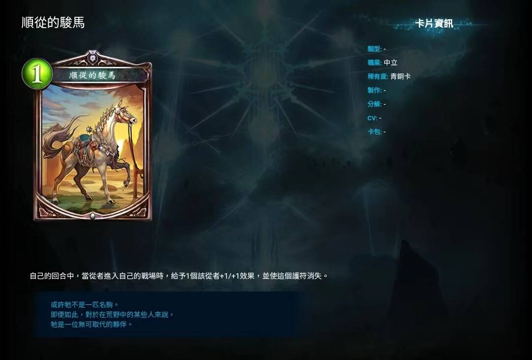 谢幕曲 召唤1个顺从的骏马到战场上。