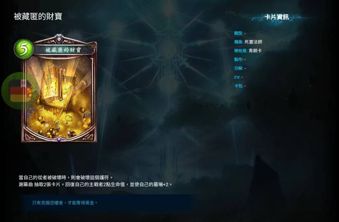 入场曲 如果葬送已发动,则会随机将1张死灵法师随从卡,由自己的牌堆抽取到手牌中。