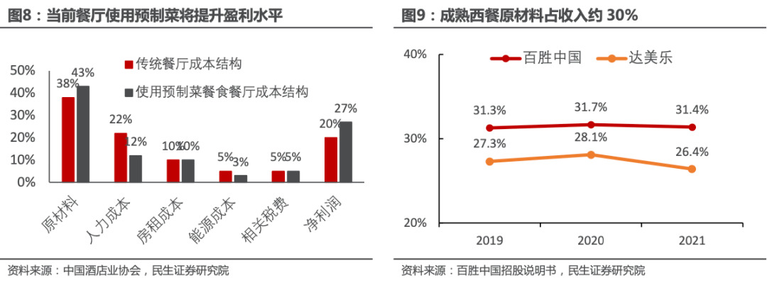 用料理包的话,就更别说了,连烹饪这一步都省了,还可以降低外卖配送价格和出餐时间。中国酒店业协会调查的部分预制菜餐厅,净利润相比于传统餐厅会提高 7% 。