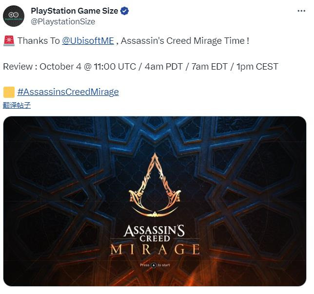 根据知名爆料推主PlayStation Game Size的消息,《刺客信条:幻景》媒体评分将于北京时间10月4日下午7点解禁。《刺客信条:幻景》将于2023年10月5日发售,登陆PS5、PS4、Xbox Series X|S、Xbox One和PC(Epic、育碧商城)。