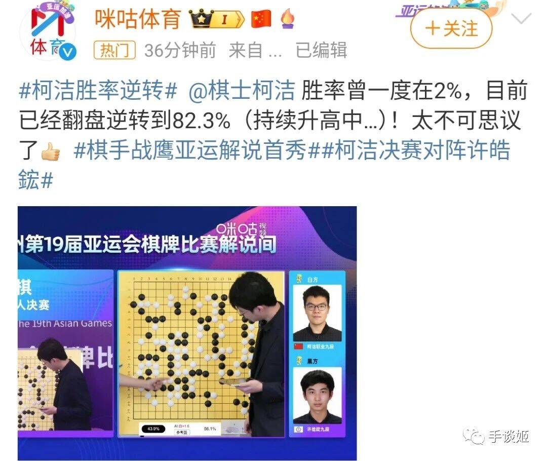 剧情是否合理不在姬今天讨论的范围,姬想说的是,这个梗传播挺广,乃至于出现在了亚运会围棋比赛的讨论之中。