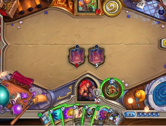图为对面7费硬币奥丁,我直接复制对面2个奥丁完成斩杀。