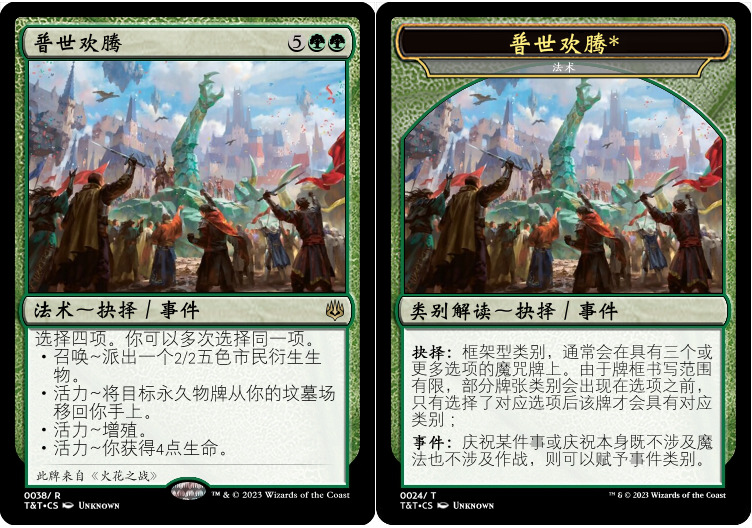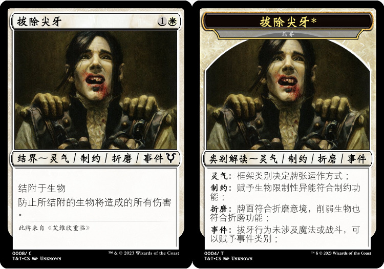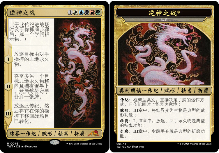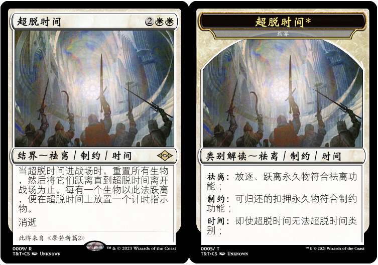 新增的框架类别:抉择(具有三种及以上选项的魔咒,每个选项具有各自的魔咒类别,在选择后该咒语或永久物便具有选项里的类别)