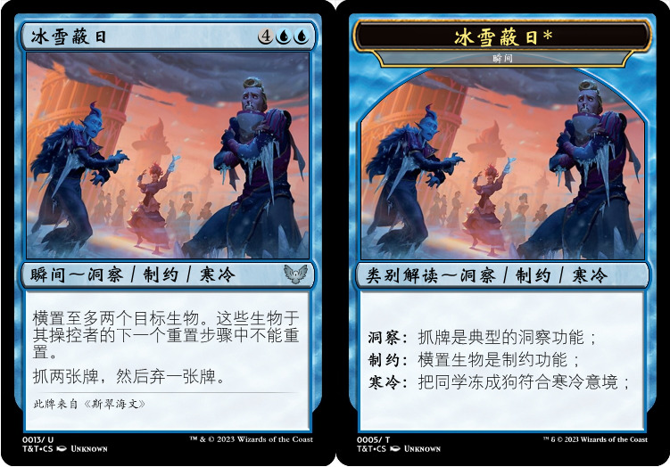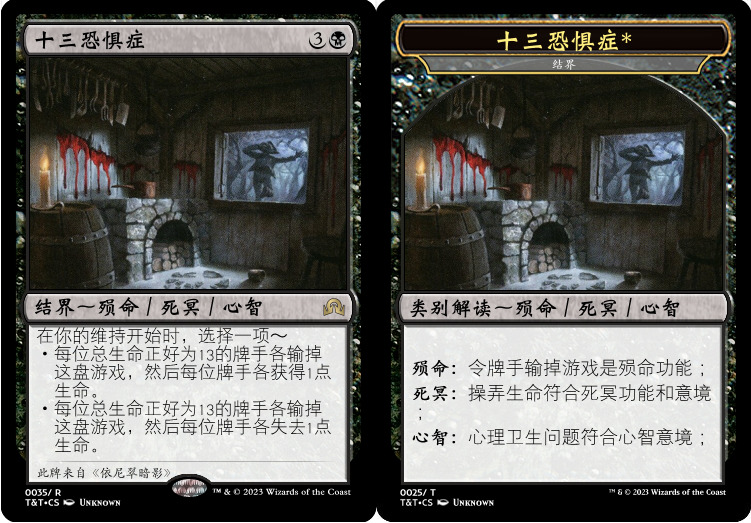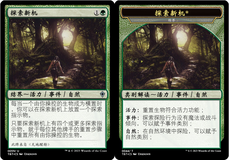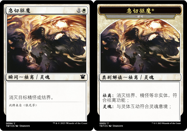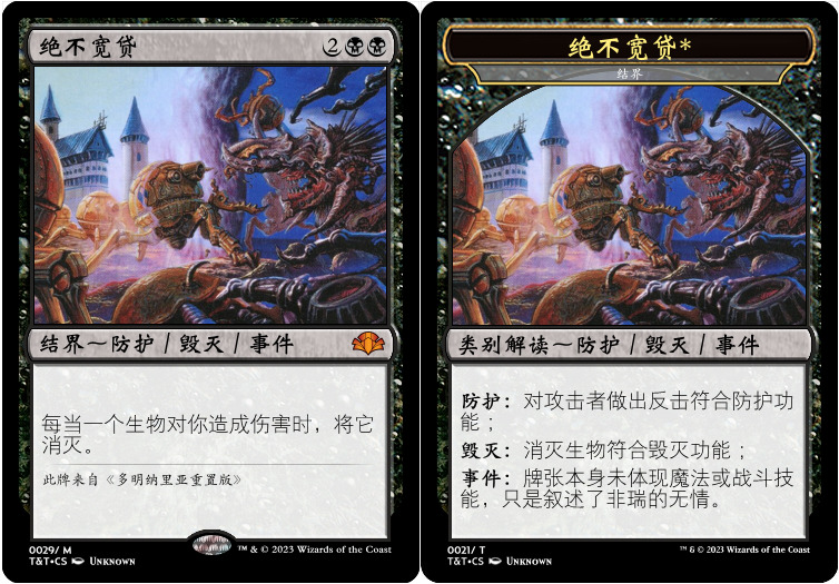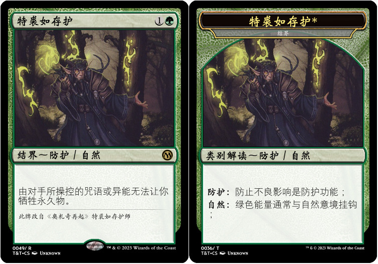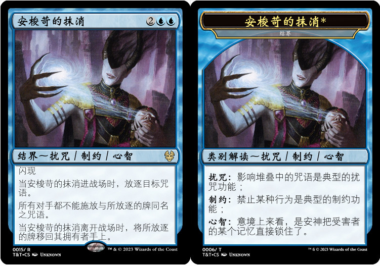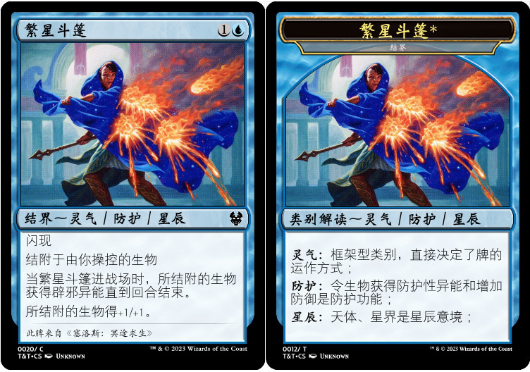 这次DIY将带入魔咒类别的概念,即通过风味意境和卡牌功能给瞬间、法术和结界加入相应的魔咒类别,而魔咒就如同史迹一样是数个类别的集合。结合上文不难看出,瞬间、法术和结界都是魔咒。