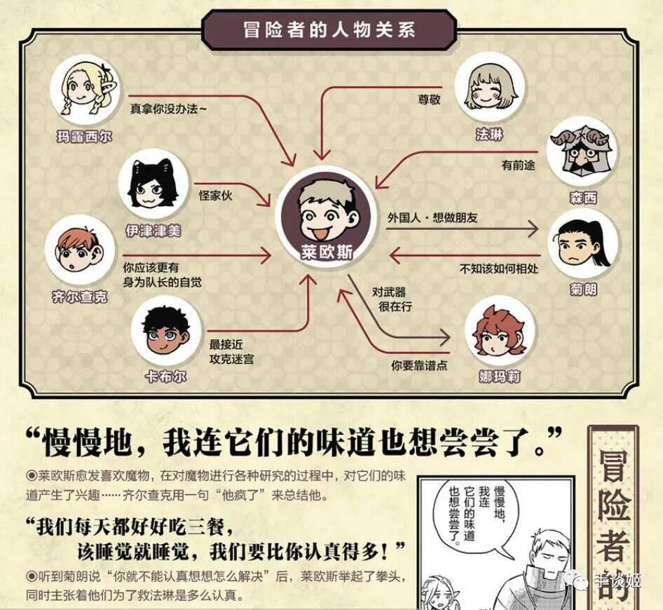 尤其是在世界观丰富度,剧情的铺垫,人物魔物的背景设定上的完成度远远高出了同类一截,使得看《迷宫饭》完全是一种享受。