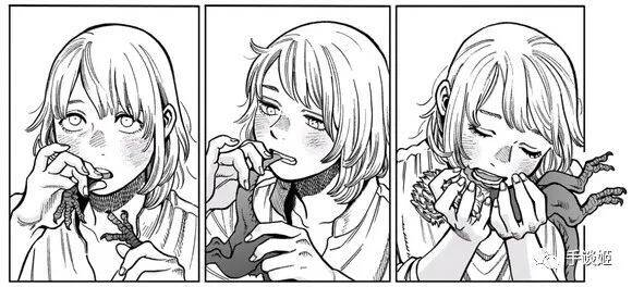 同为设定严谨的作品,放在《来自深渊》这样的地下世界中,可能同伴的脑壳会变为盛饭的器皿吧,但在《迷宫饭》中,我们能感受到的更多是温馨美食小剧场带来的轻快和欢愉。