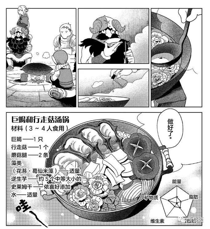 首先介绍下漫画的基本信息,《迷宫饭》是官方名字,以前汉化组的时候被翻译成《舌尖上的地下城》,因为赶上那会儿美食纪录片在国内很出名嘛,挺传神的;