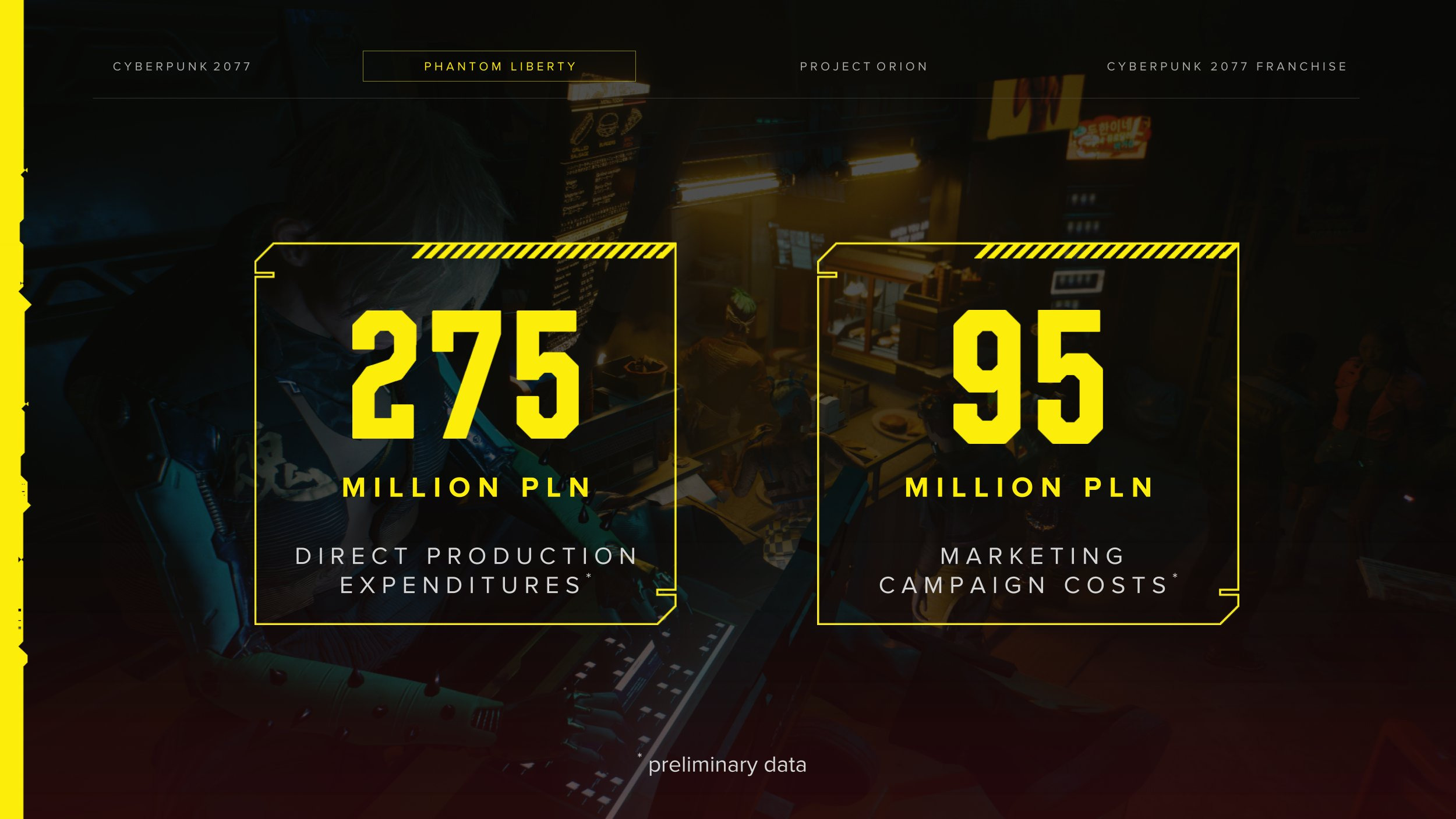 近日CDPR宣布《赛博朋克2077》资料片“往日之影”制作成本大约为6280万美元,而宣传支出大约为2170万美元,因此该资料片的总成本大约为8460万美元。