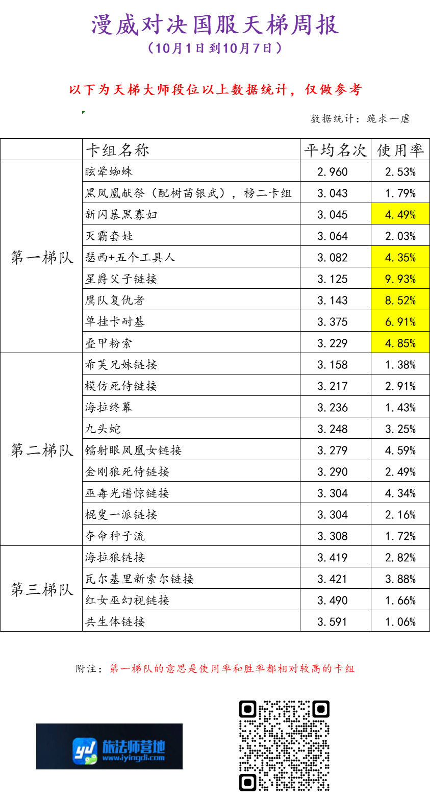 本周报数据仅做参考,不代表卡组在“动态天梯”的适应性,不做任何卡组推荐、合成: