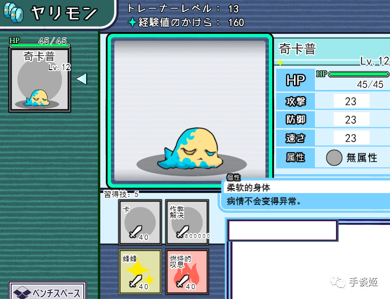 姬提到的前面两点正是游戏大卖的关键,一方面在玩法上还原宝可梦,作者设计了与初代宝可梦一样的151只渣可梦,并且有专属特性,属性克制,特色技能,以及……mega进化!