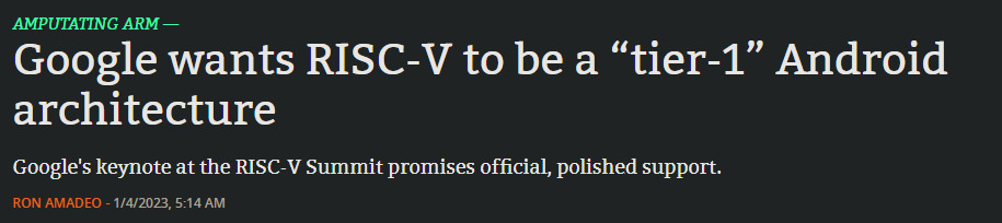 谷歌也在今年宣布, Android 将把 RISC-V 放到与 ARM 相同的地位上。