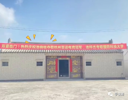 而他另外两位队友的待遇,则透着家乡人民对夺金运动员最朴素的尊重与喜爱:在广东揭阳,家人为池晓明(ID:Ming)在宗祠拉了横幅,在林恒(ID:暖阳)的家乡温州苍南县沿浦镇,林氏宗祠为他拉起多道横幅还放了超大的夺冠照片,这下真·打电竞也可以光宗耀祖了。