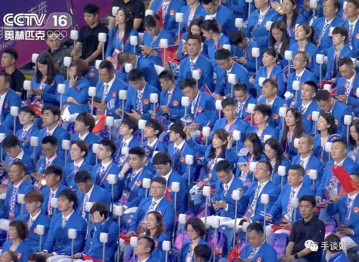 所以运动员入场成为了姬最期待的环节,当引导员举着“中国”的牌子出现在镜头前,姬和所有的网友一样,都化身列文虎克,仔细寻找着电竞运动员的身影。886人的方阵实在庞大,但我们仍然是那么认真地寻找他们,哪怕只有一个侧面、一个掠影,甚至是其他运动员照片中的背景。