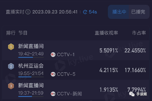 有趣的是,这次杭州亚运会开幕式的**收视率破5%刷新纪录,多台累计收视率更是高达13%,很难不让人浮想联翩——不会是大家都在忙着找自家崽们而托起来的收视率吧!