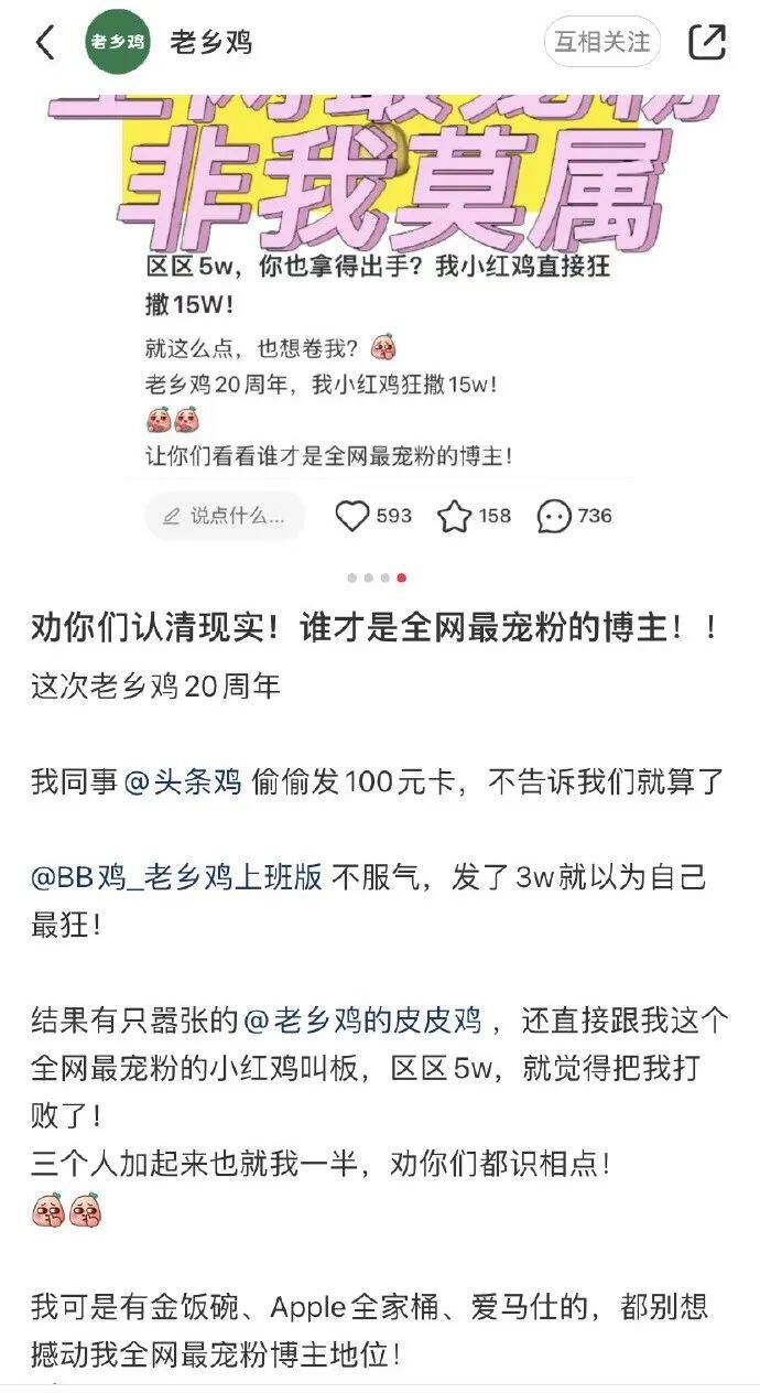 在各大平台的账号上也都有抽奖,甚至还有全年免单的名额抽奖。为了争这个送礼最多的名号,老乡鸡内部还内卷起来了。
