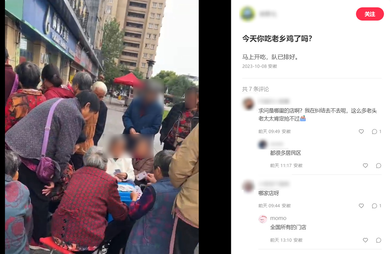 那一天,各地的老乡鸡门店,几乎成了大爷大妈们心照不宣的集结地。