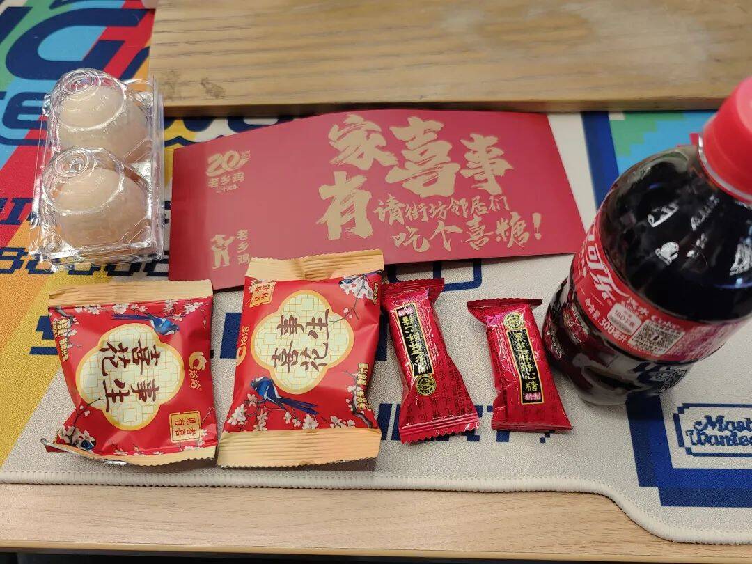 里面除了喜糖、可乐之外,甚至还有俩笨鸡蛋