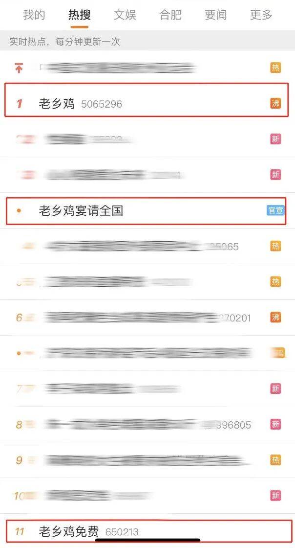 一时间,老乡鸡三个字直接登顶了热搜第一。
