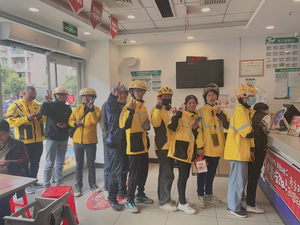 在现场的小辣椒见到了很多不同的人。除了年轻白领,还有老人、外卖员、保安、工人,也有一大家子过来吃饭的。