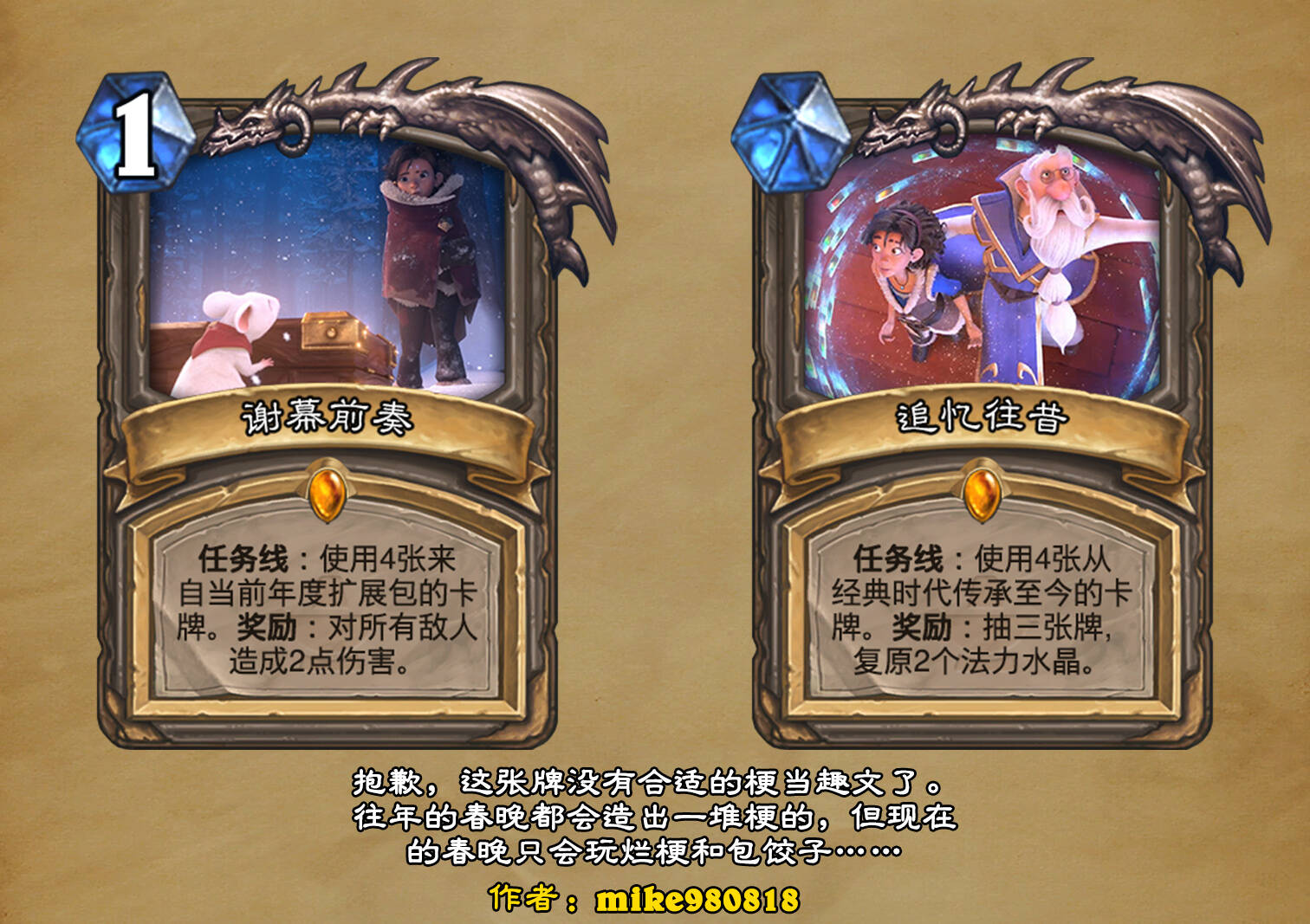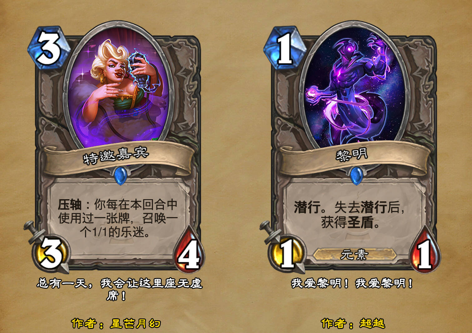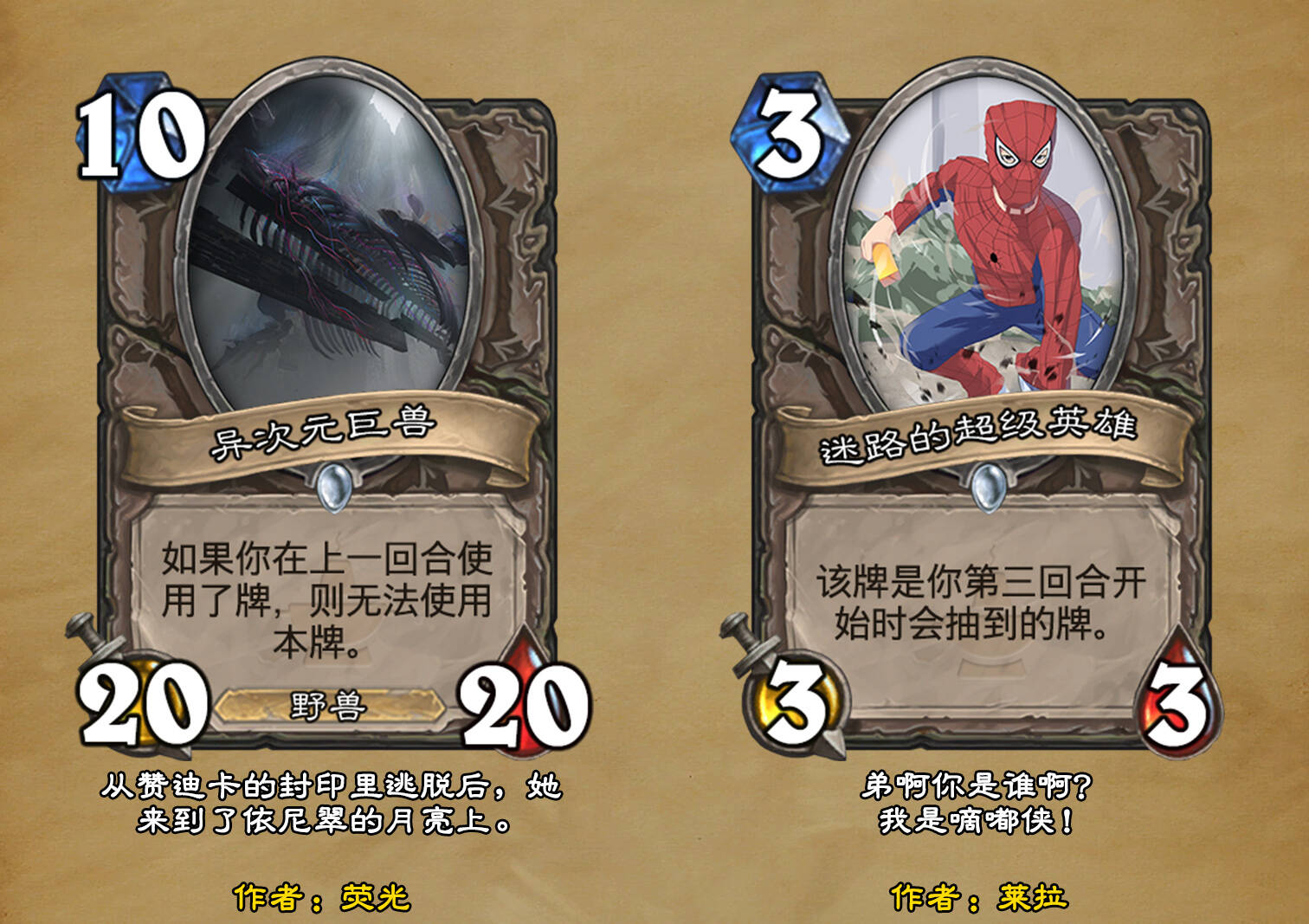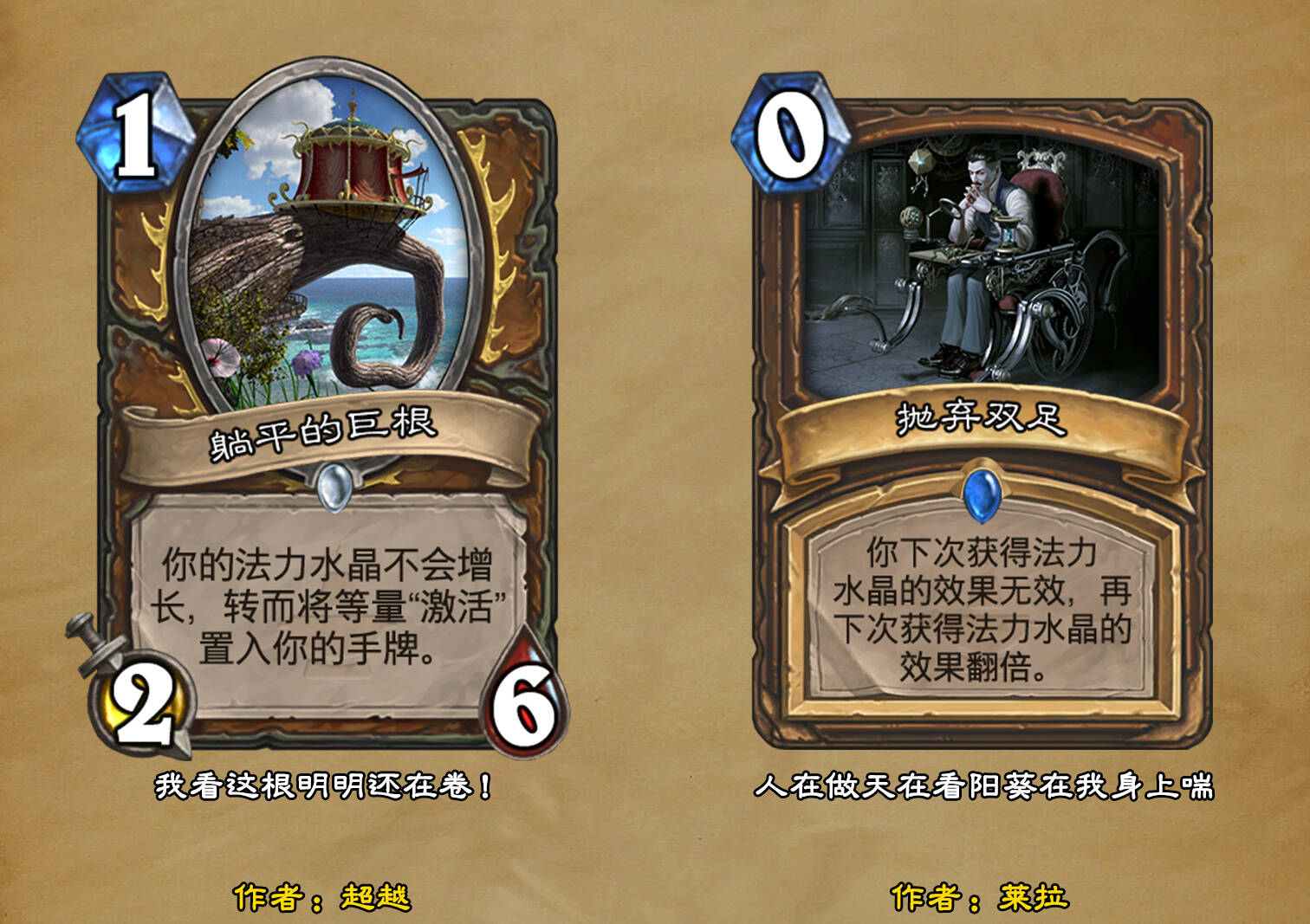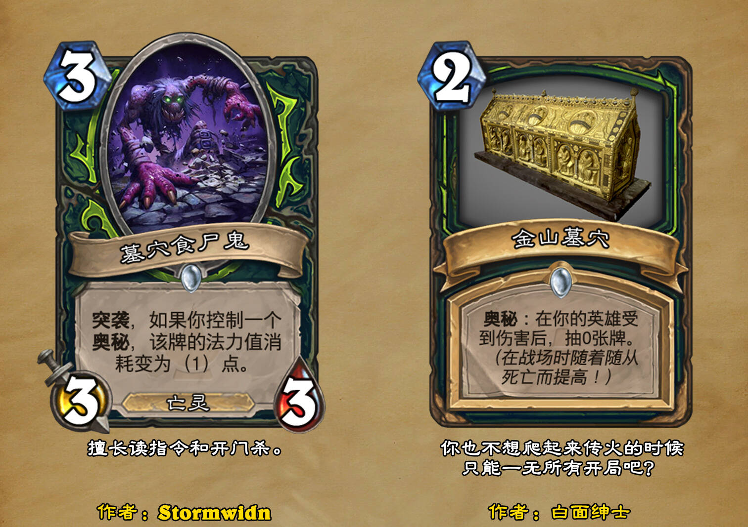 *本扩展包的设计工作于2023/01/22开始,碍于炉石国服关服,参与者的设计热情已大不如前,许多空格由他人完成;收集原画,制图,趣文则同样花费了一些时间,因此本扩展包拖延至2023/10/14才正式完工。全部的原画收集和制图工作及大部分趣文由thsd完成。
