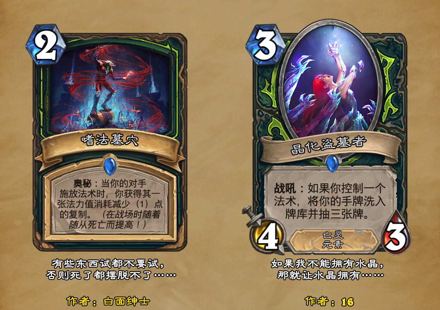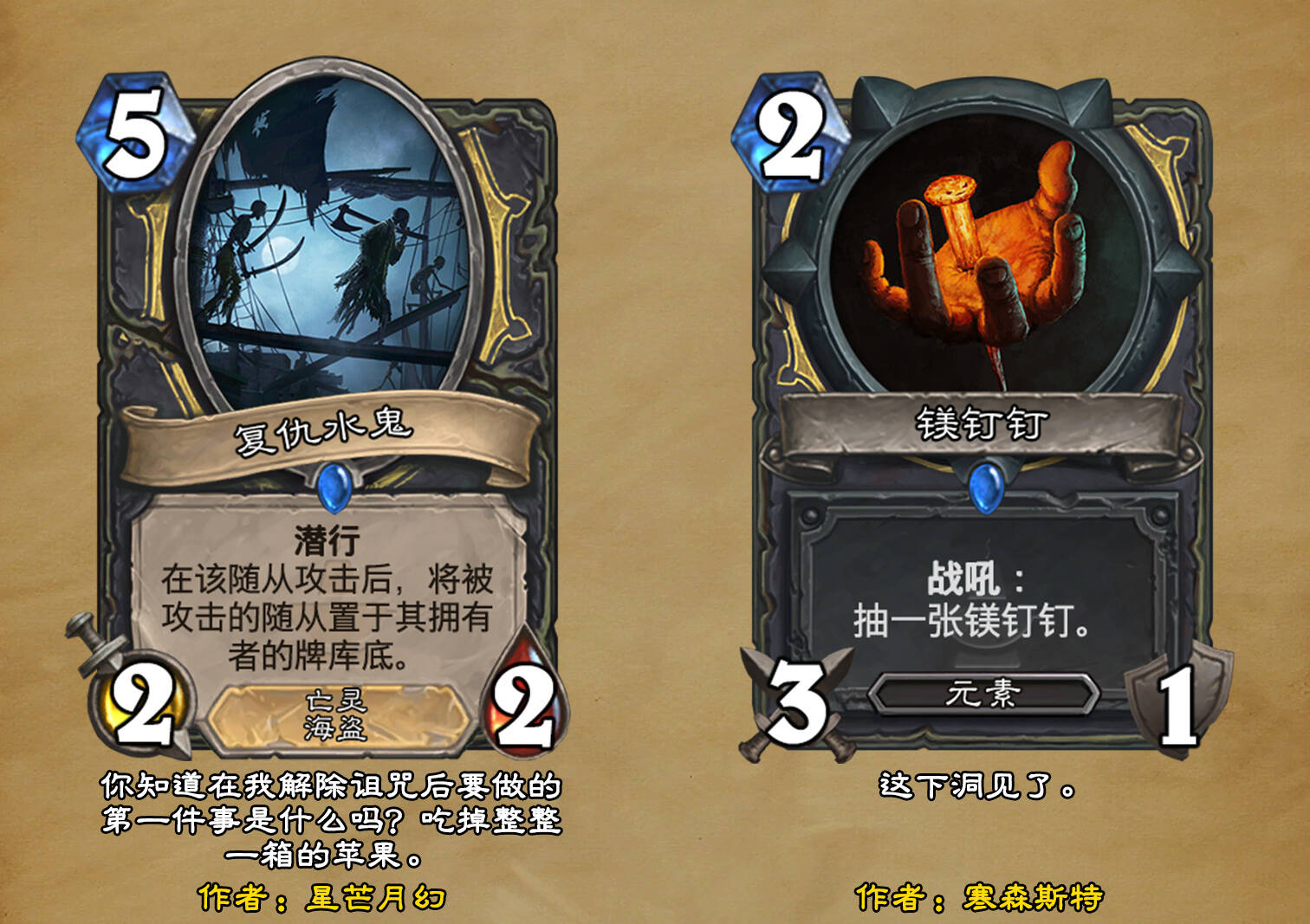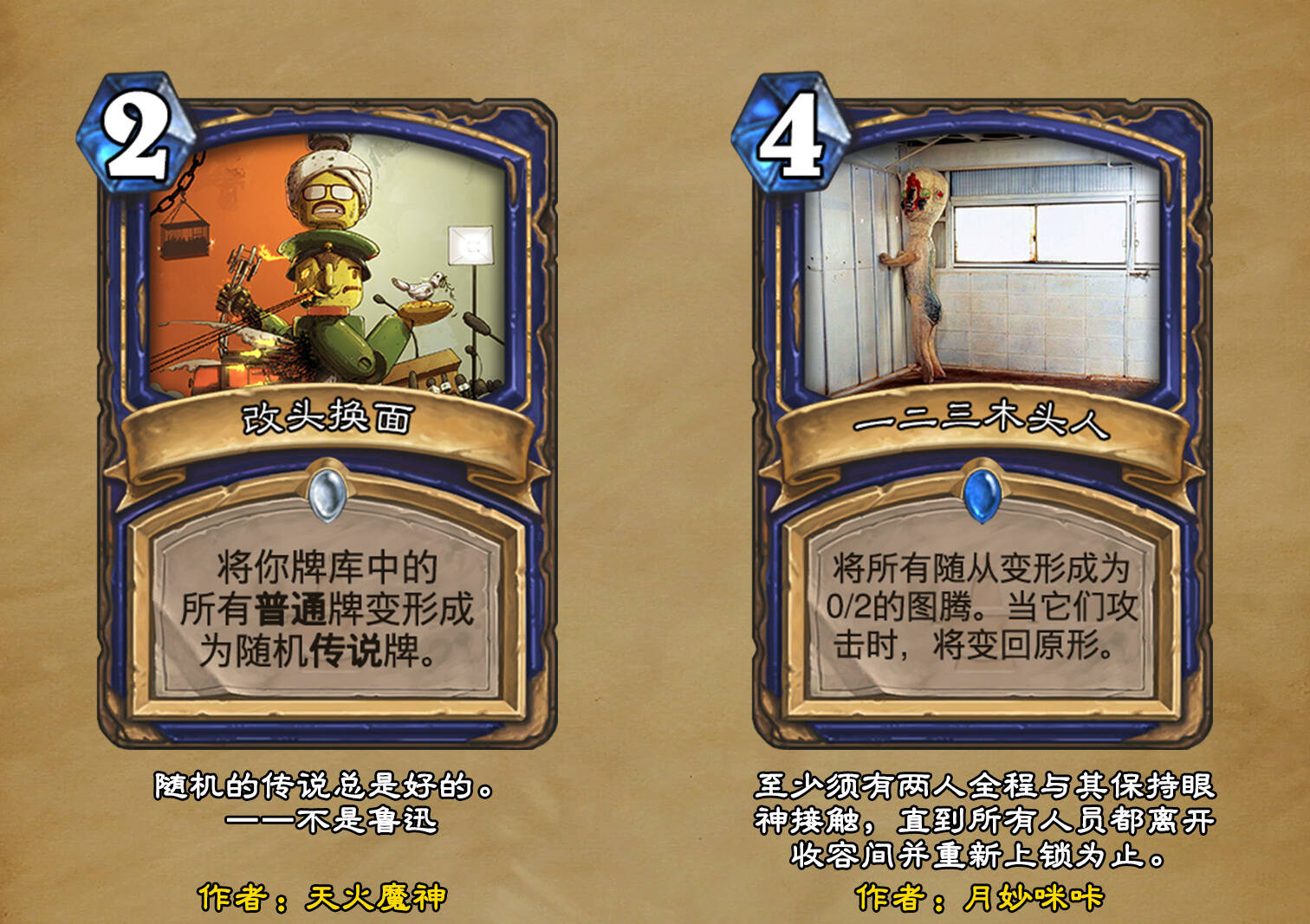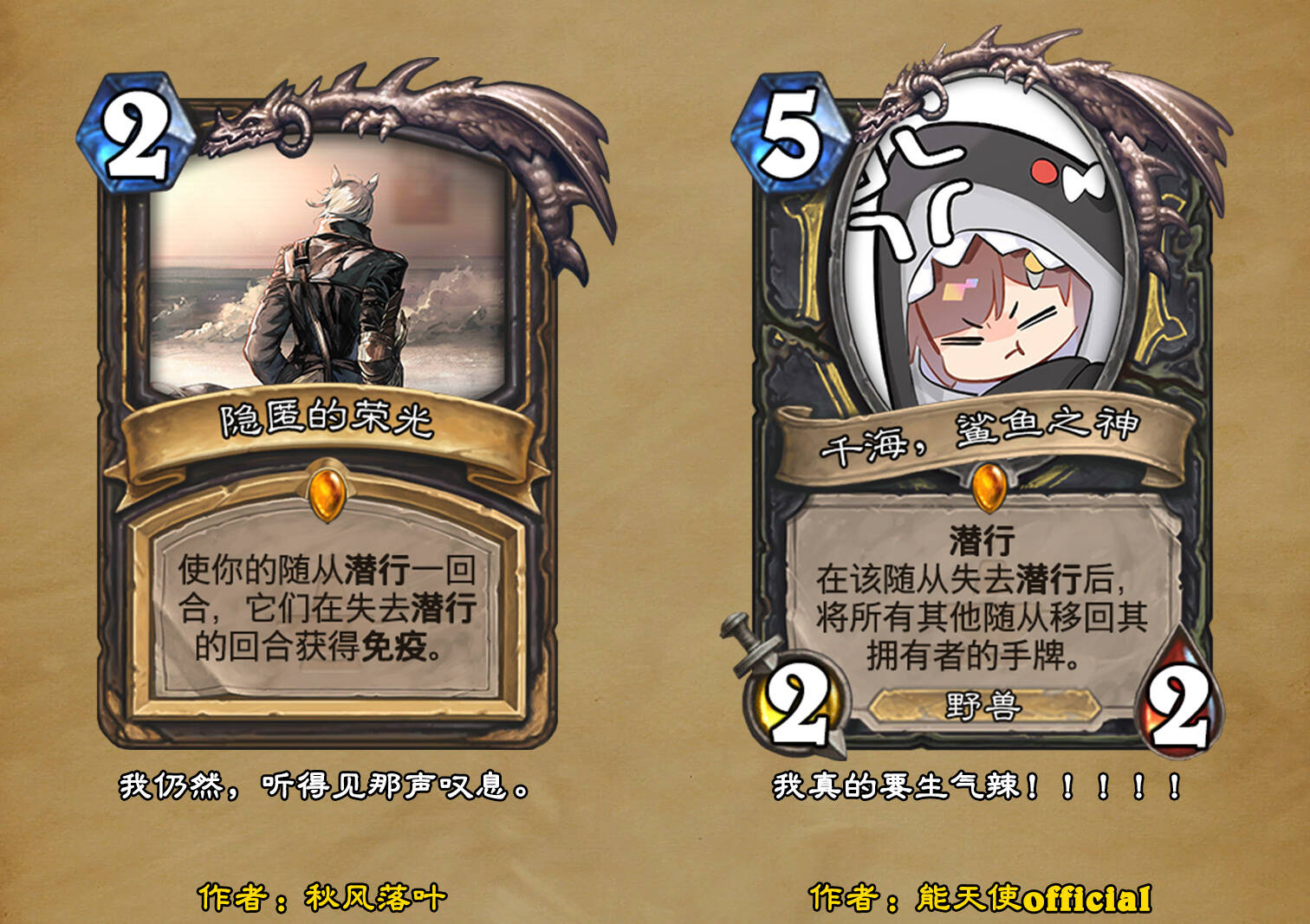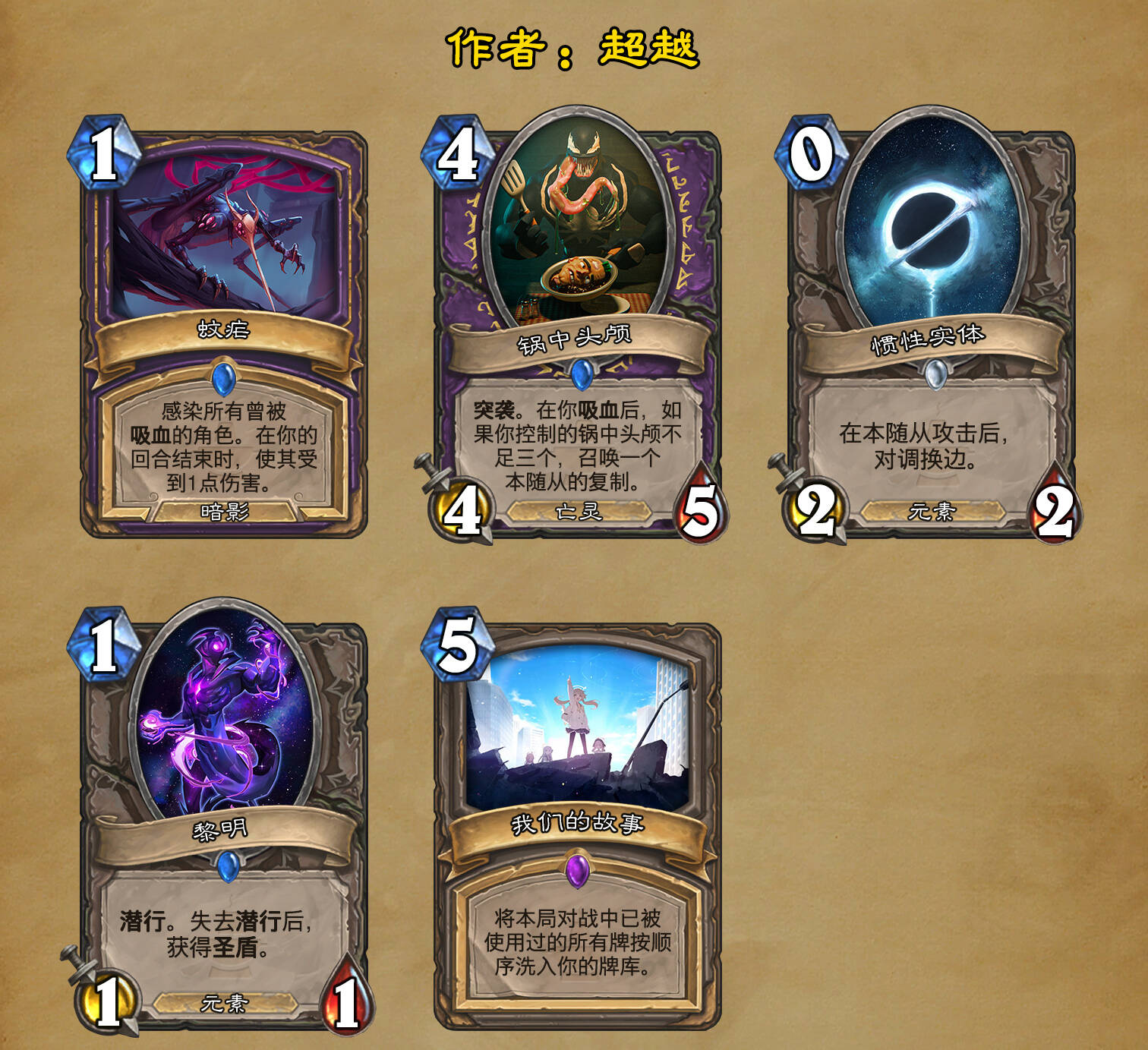 *本扩展包的设计工作于2023/01/22开始,碍于炉石国服关服,参与者的设计热情已大不如前,许多空格由他人完成;收集原画,制图,趣文则同样花费了一些时间,因此本扩展包拖延至2023/10/14才正式完工。全部的原画收集和制图工作及大部分趣文由thsd完成。