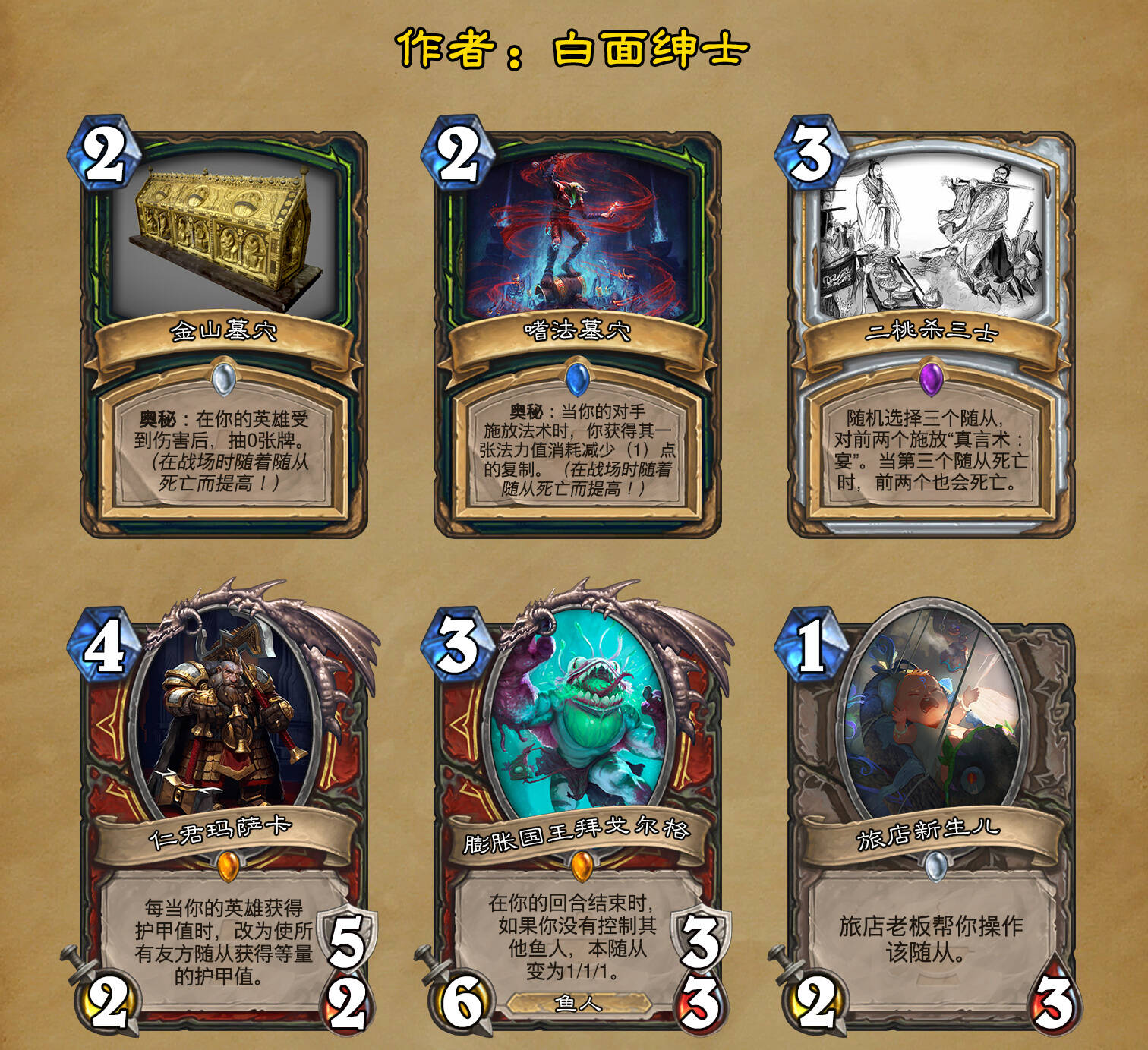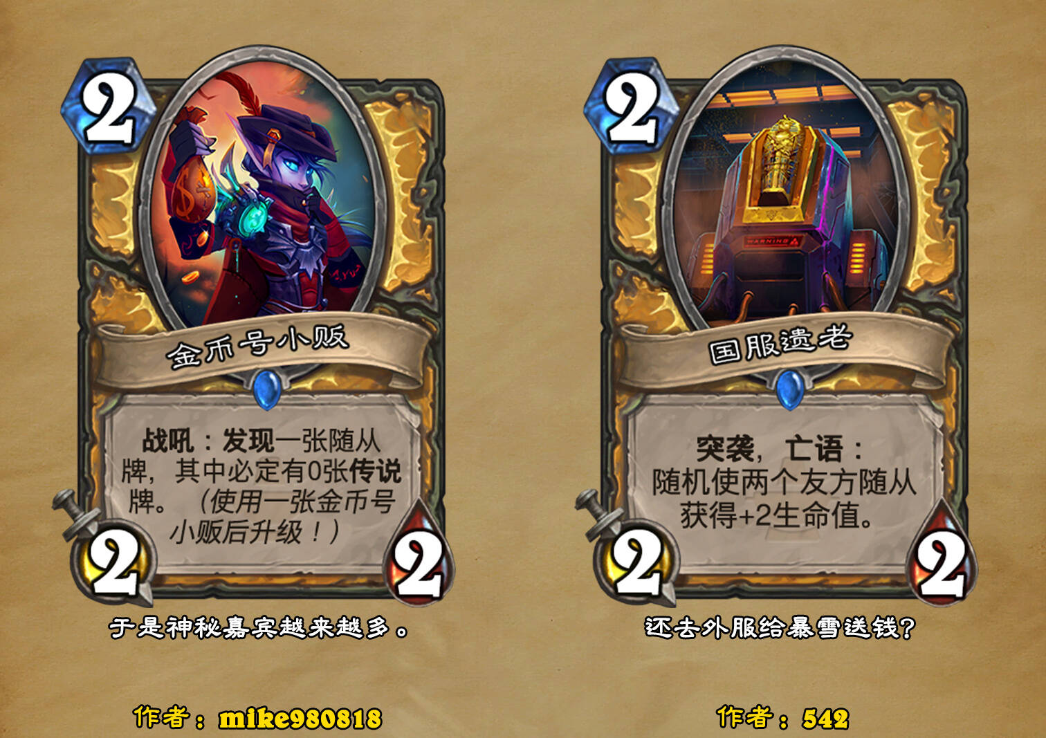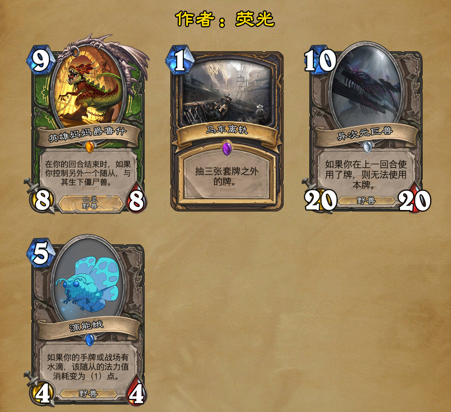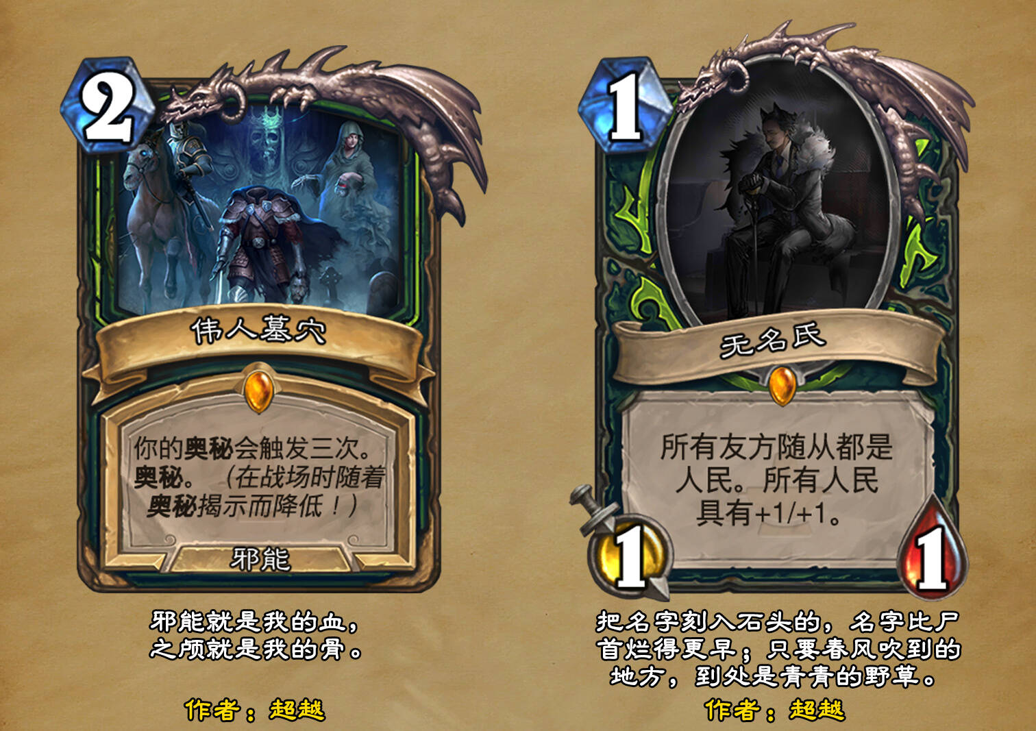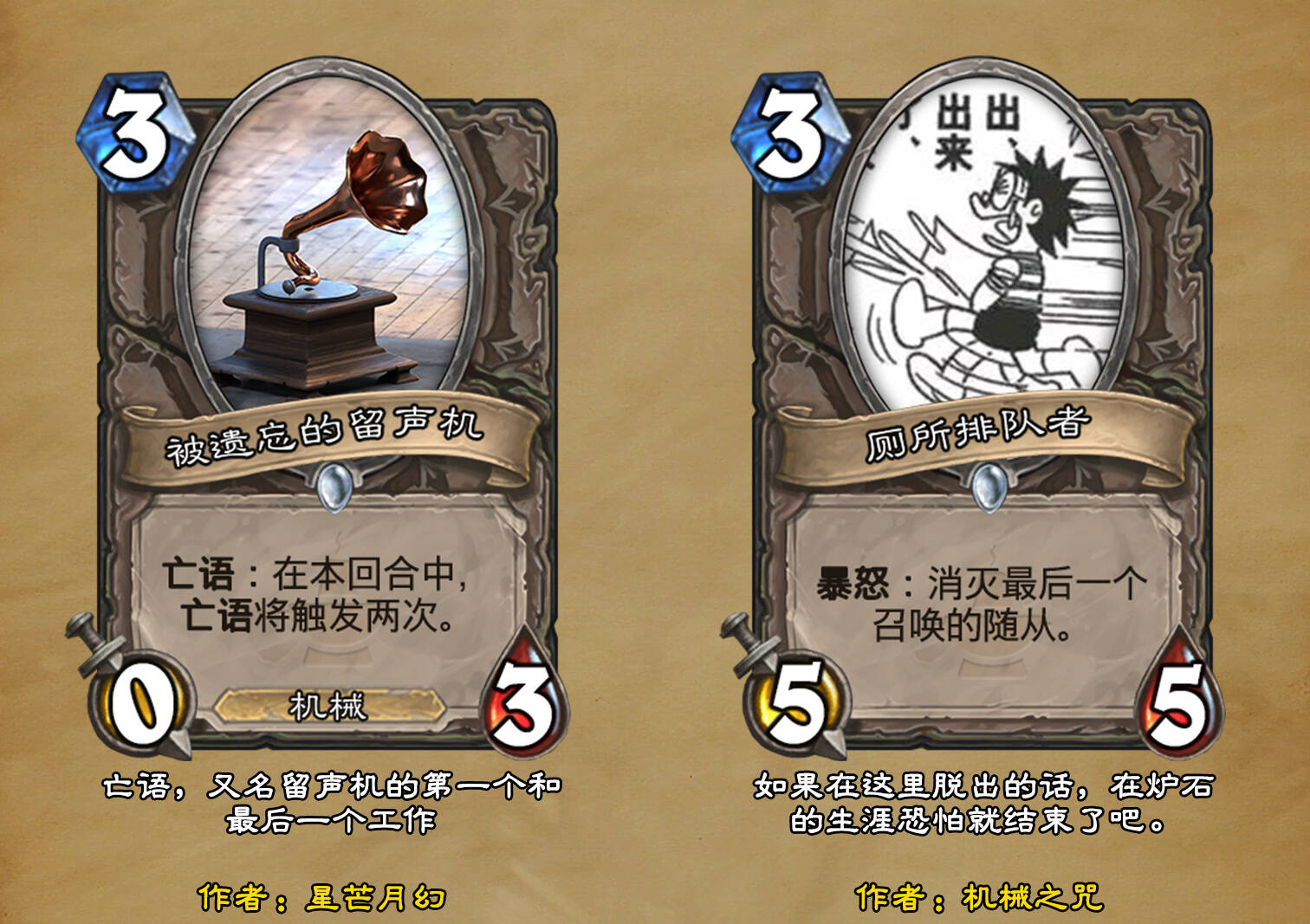 *本扩展包的设计工作于2023/01/22开始,碍于炉石国服关服,参与者的设计热情已大不如前,许多空格由他人完成;收集原画,制图,趣文则同样花费了一些时间,因此本扩展包拖延至2023/10/14才正式完工。全部的原画收集和制图工作及大部分趣文由thsd完成。