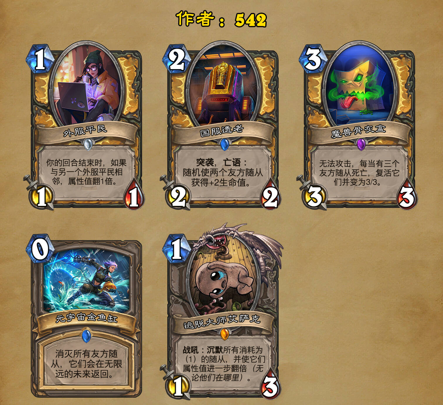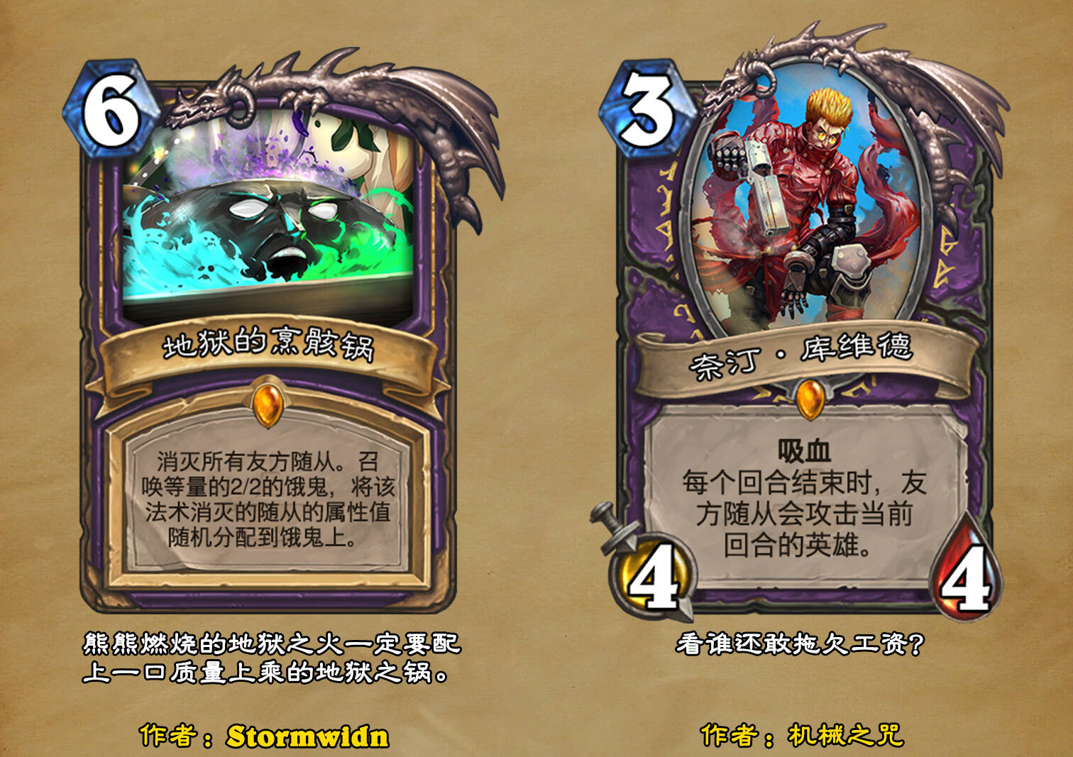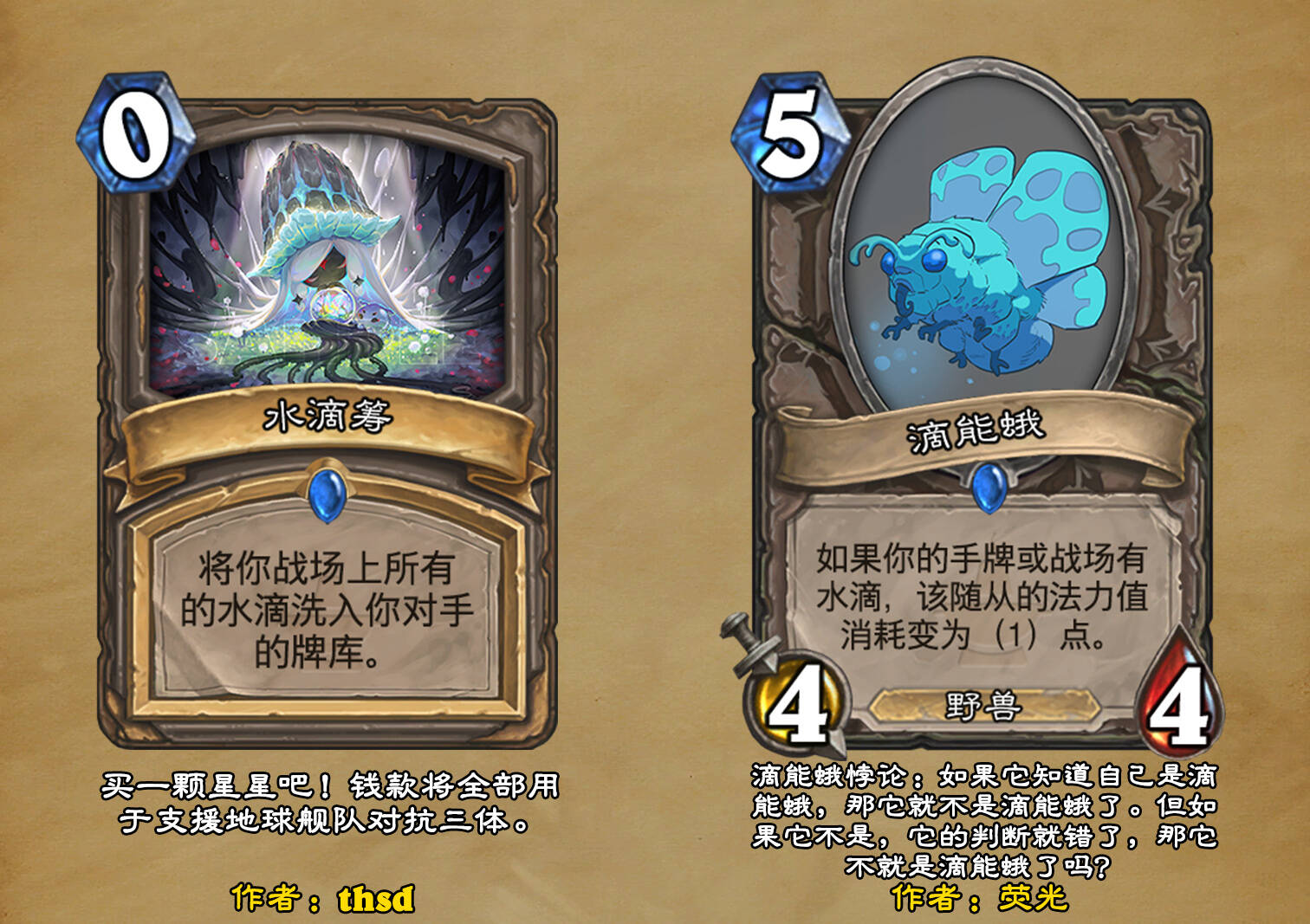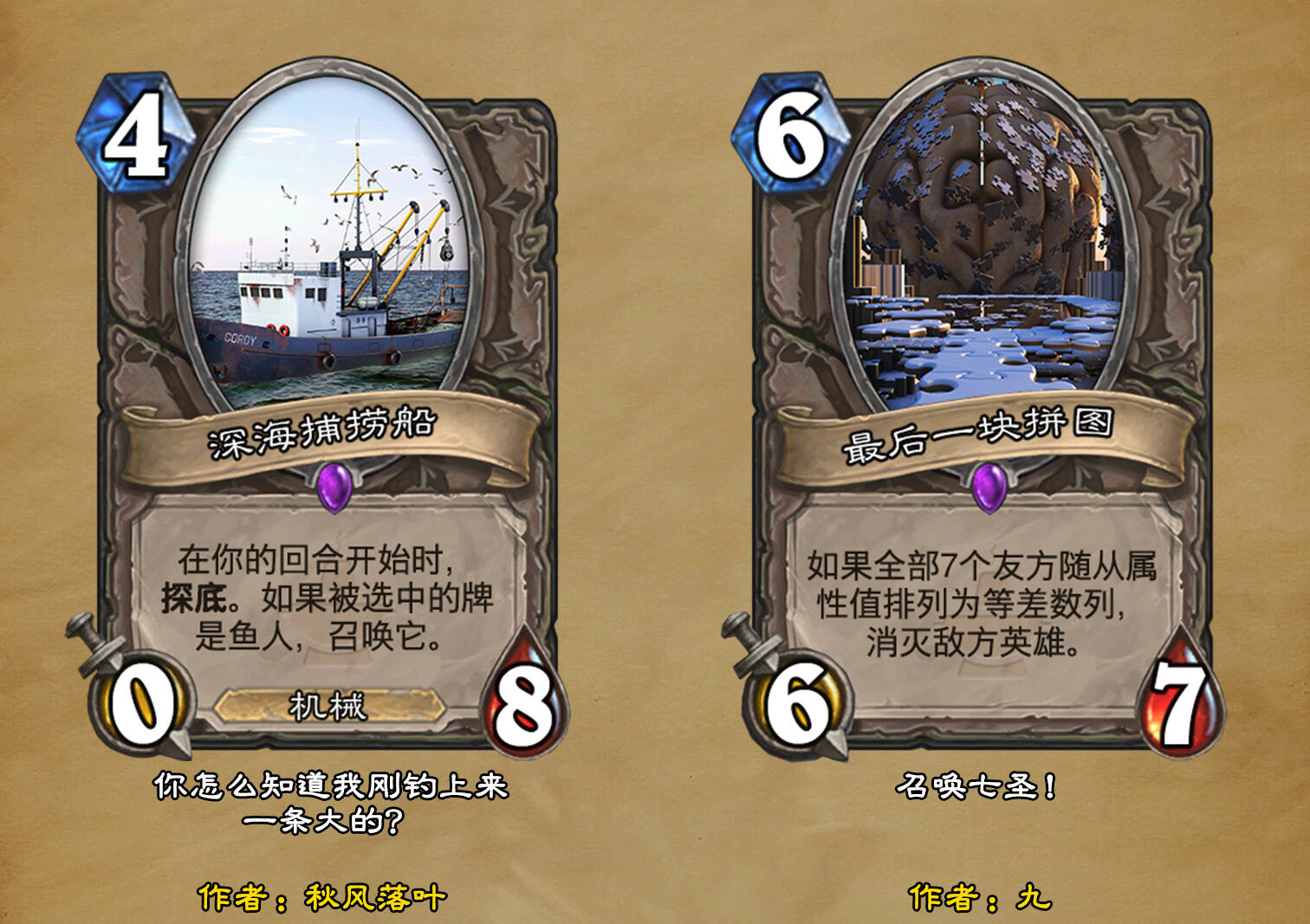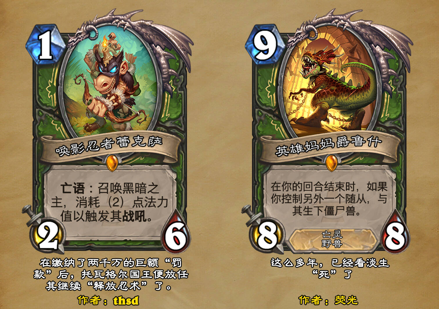 *本扩展包的设计工作于2023/01/22开始,碍于炉石国服关服,参与者的设计热情已大不如前,许多空格由他人完成;收集原画,制图,趣文则同样花费了一些时间,因此本扩展包拖延至2023/10/14才正式完工。全部的原画收集和制图工作及大部分趣文由thsd完成。