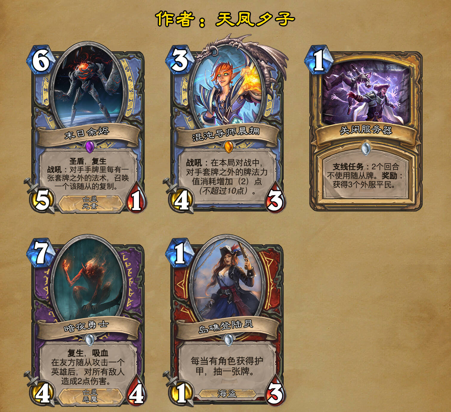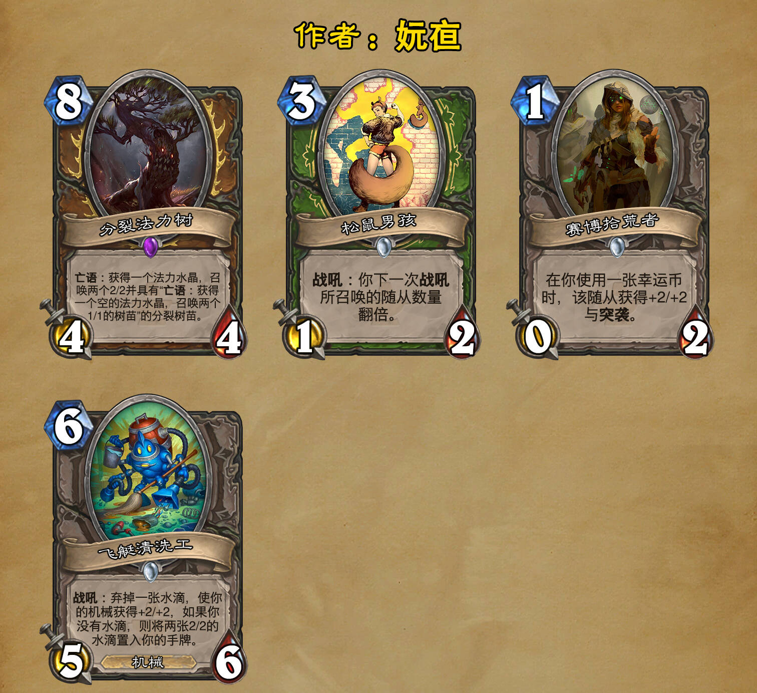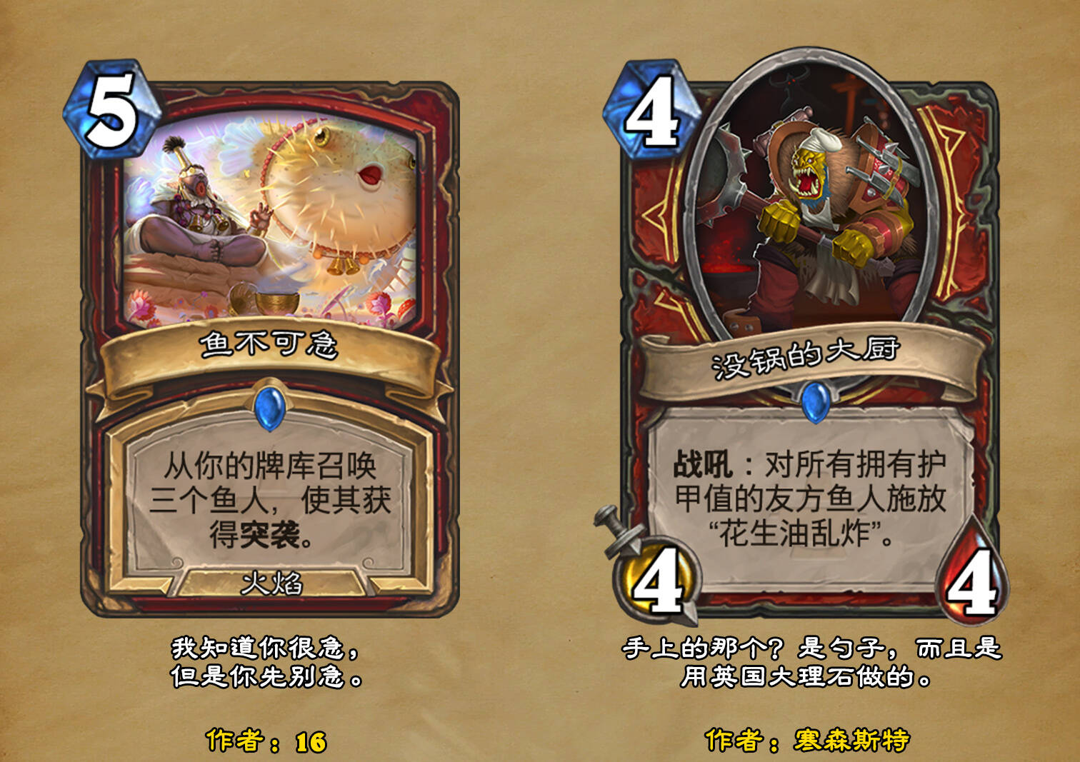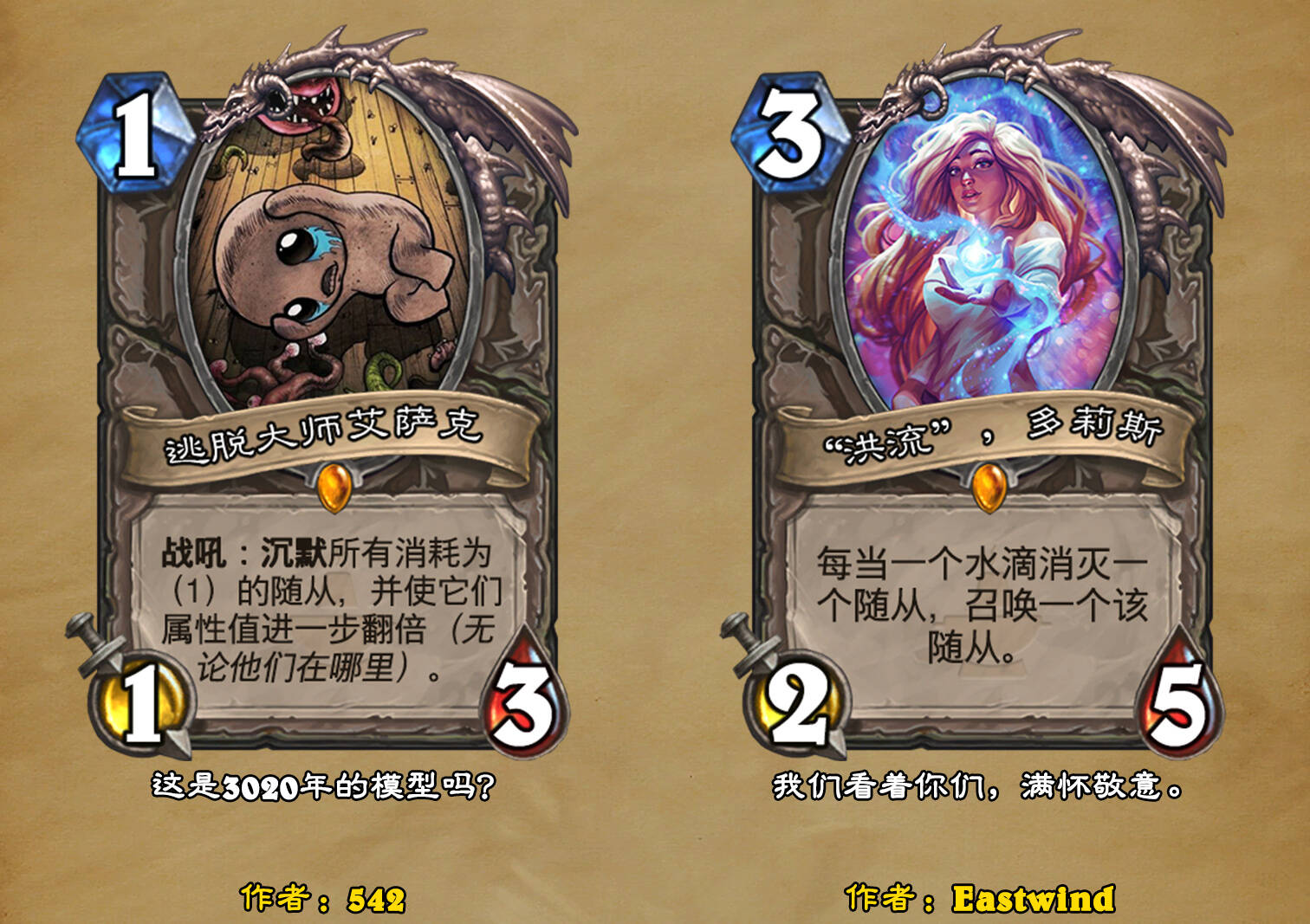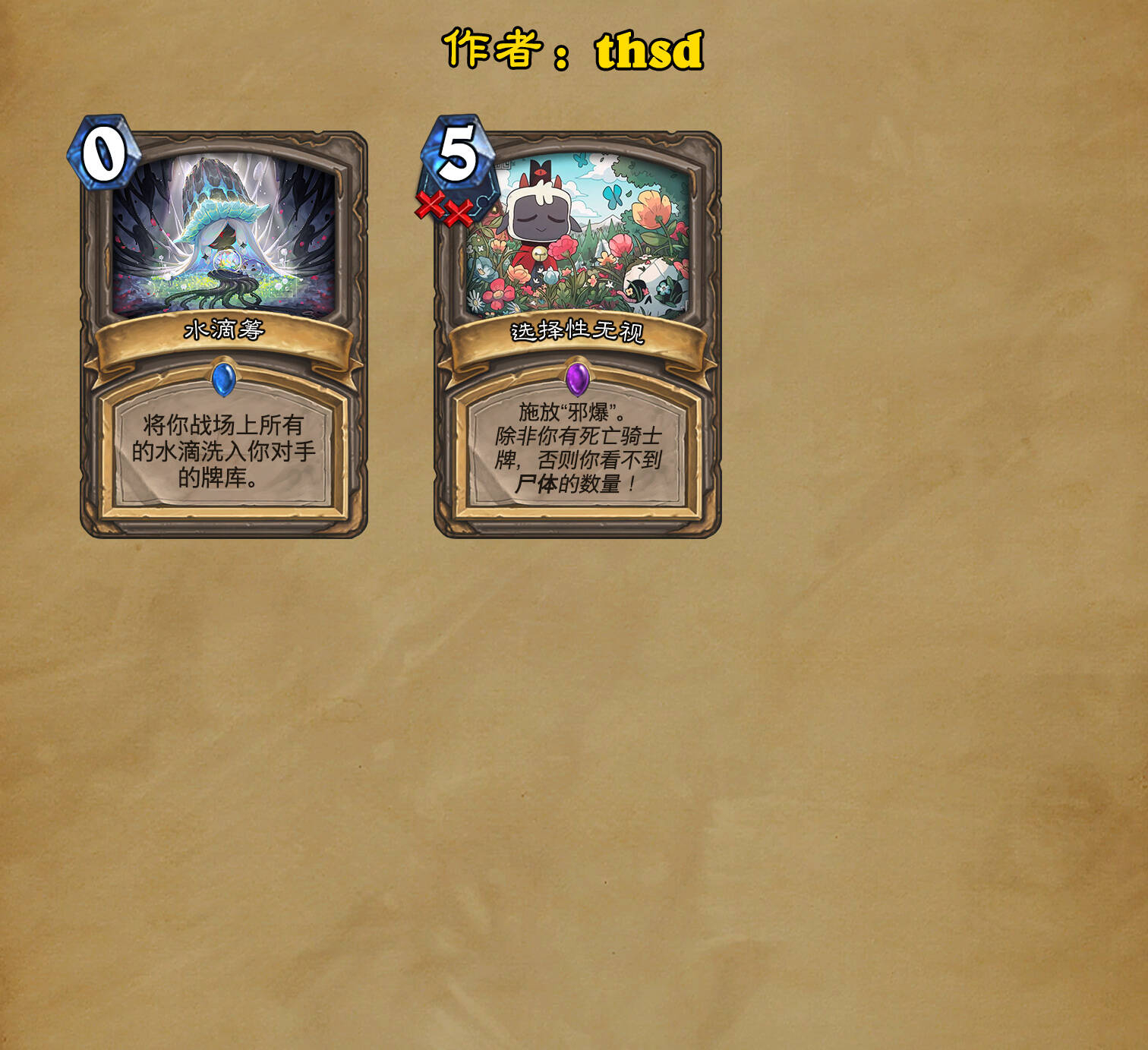 *本扩展包的设计工作于2023/01/22开始,碍于炉石国服关服,参与者的设计热情已大不如前,许多空格由他人完成;收集原画,制图,趣文则同样花费了一些时间,因此本扩展包拖延至2023/10/14才正式完工。全部的原画收集和制图工作及大部分趣文由thsd完成。