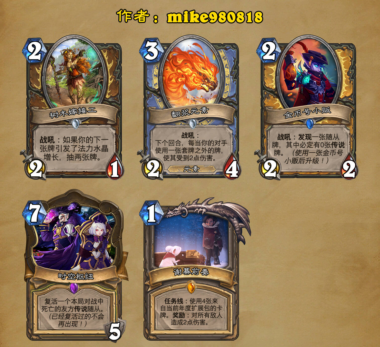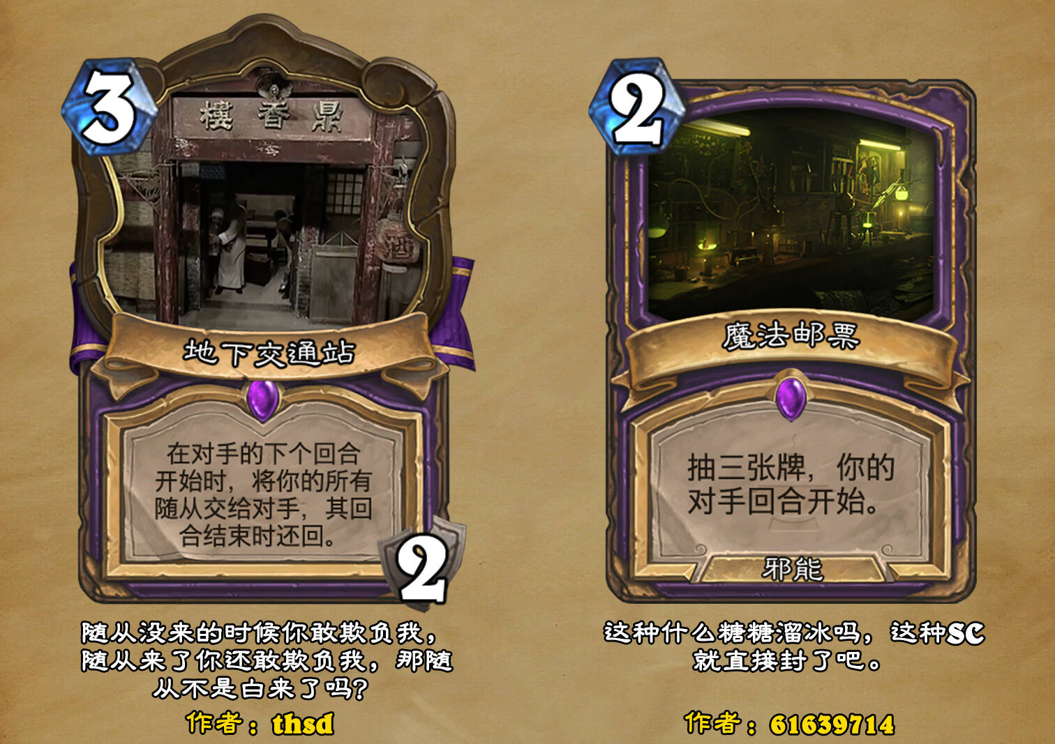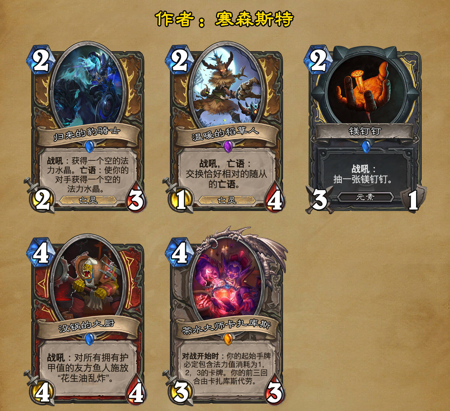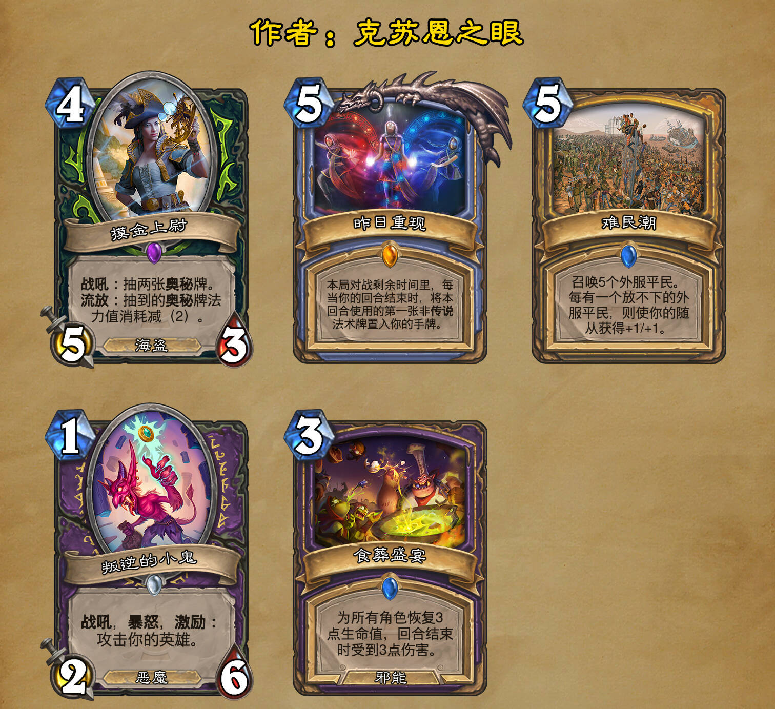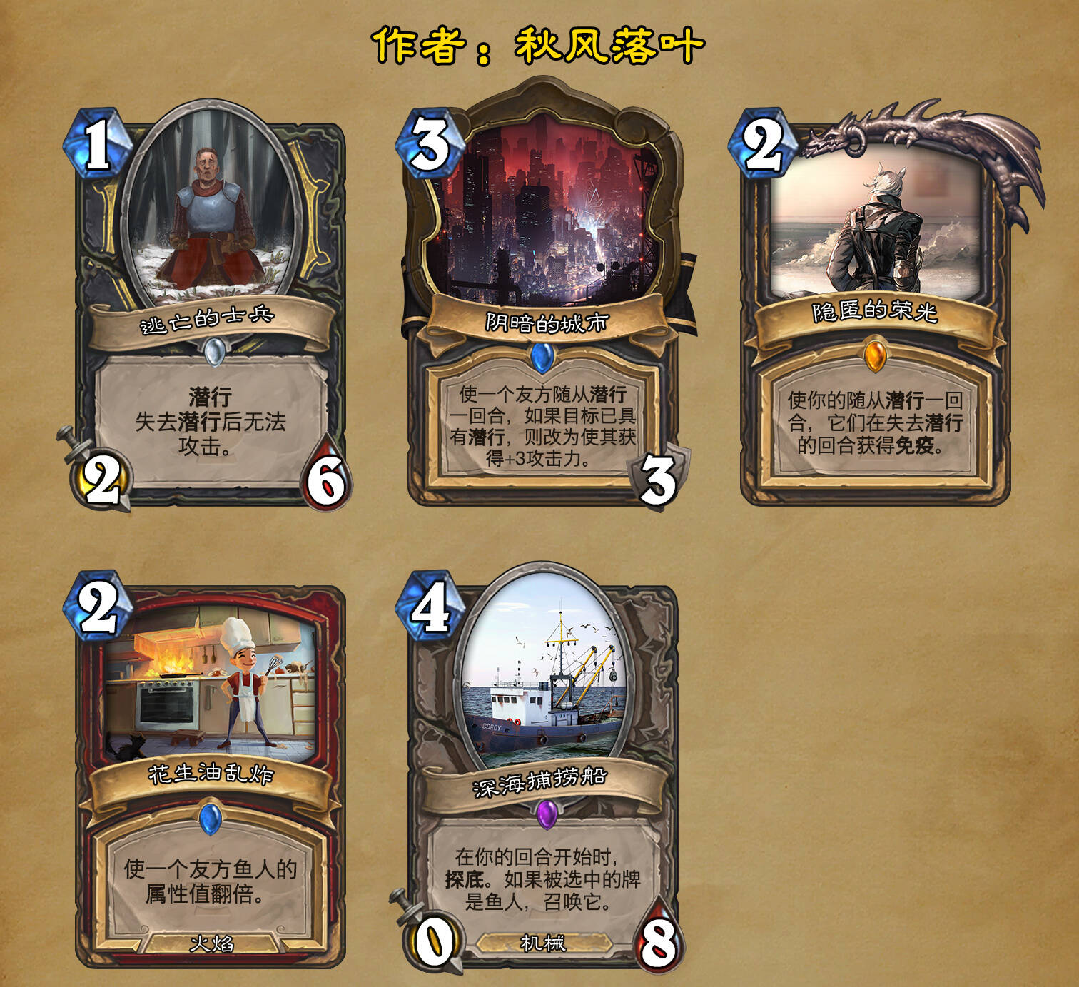 *本扩展包的设计工作于2023/01/22开始,碍于炉石国服关服,参与者的设计热情已大不如前,许多空格由他人完成;收集原画,制图,趣文则同样花费了一些时间,因此本扩展包拖延至2023/10/14才正式完工。全部的原画收集和制图工作及大部分趣文由thsd完成。