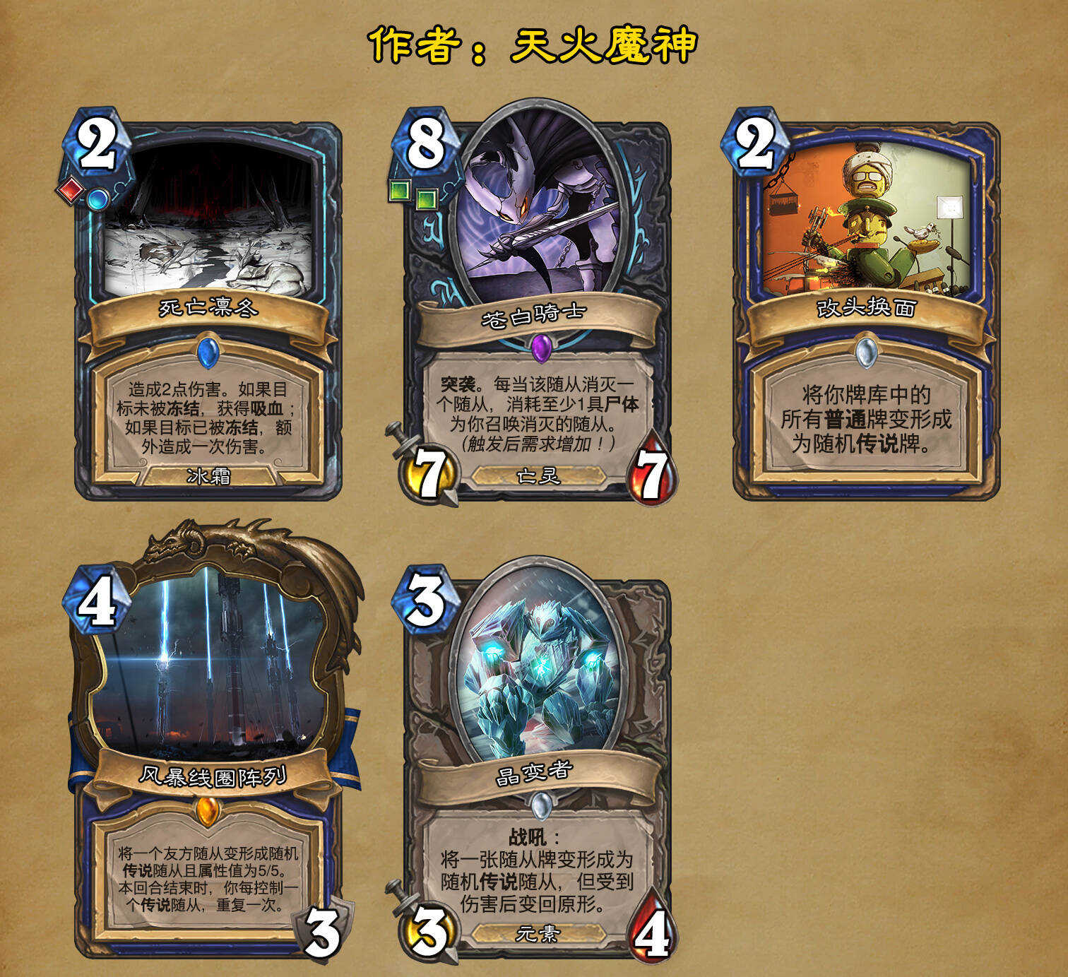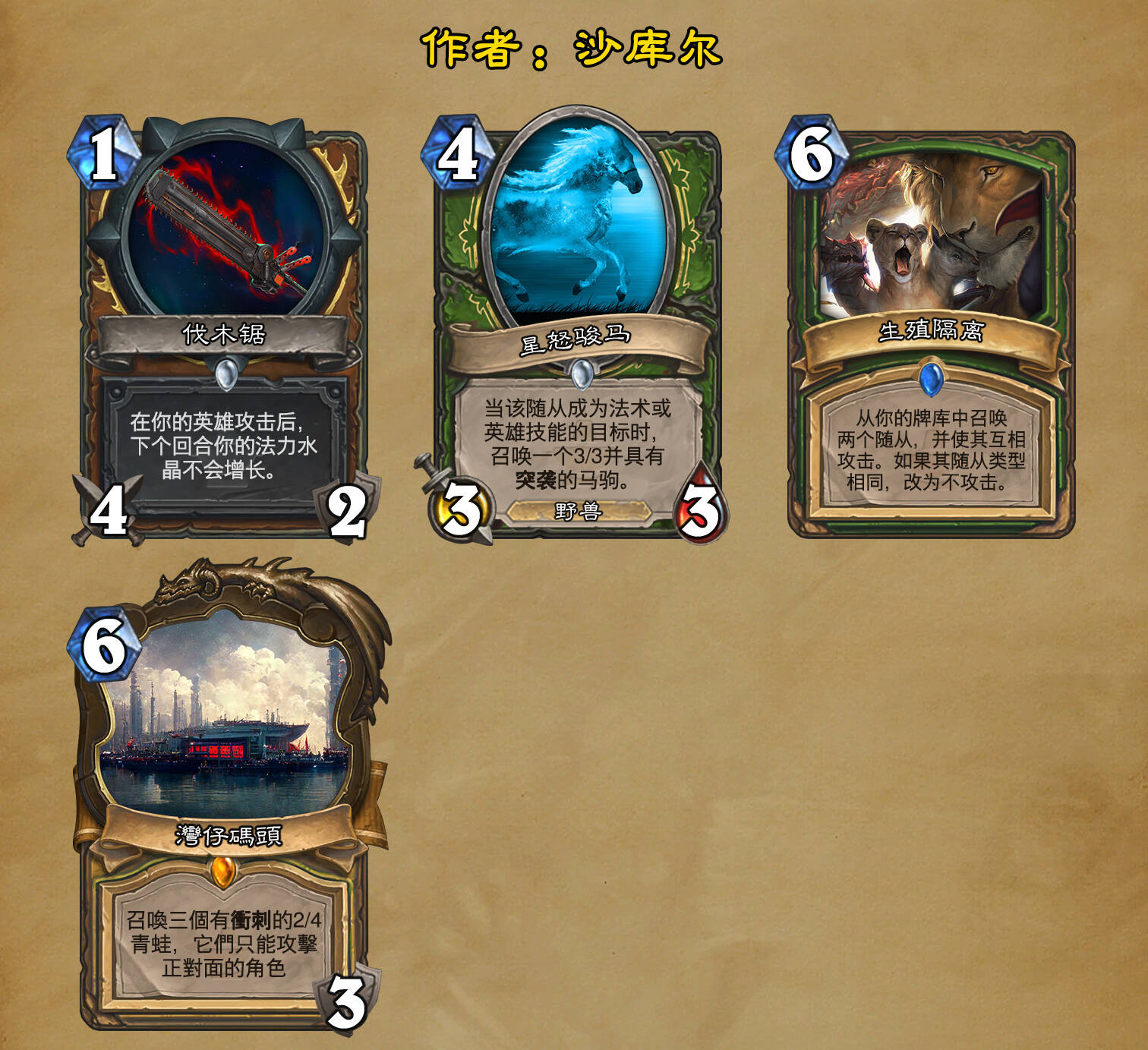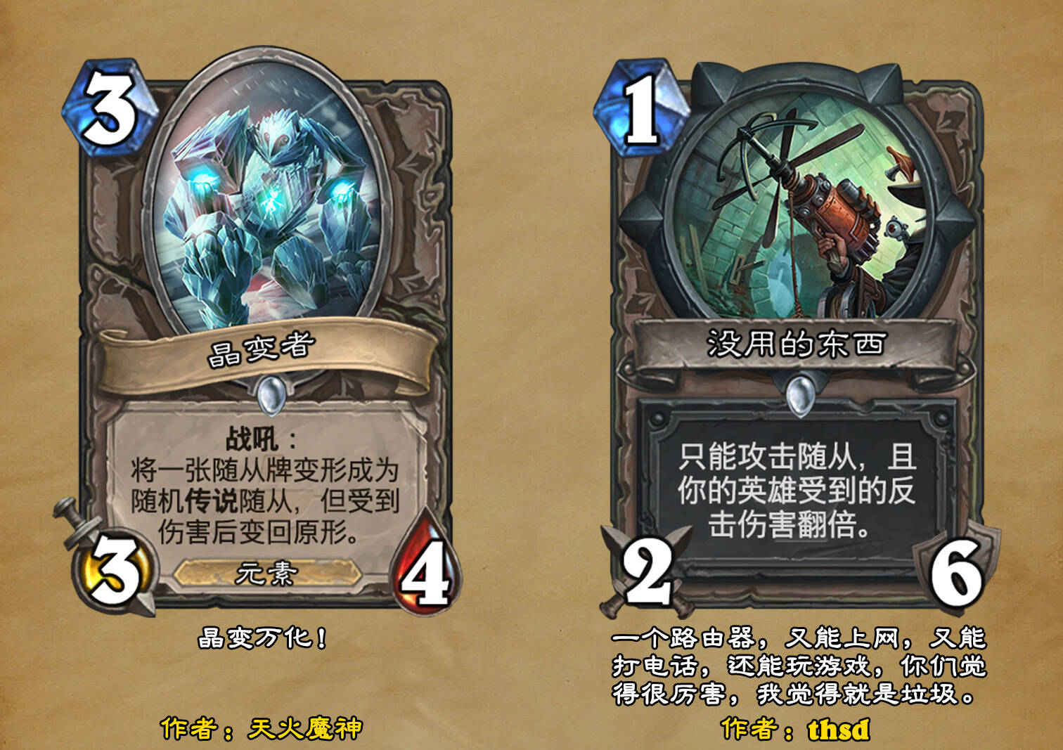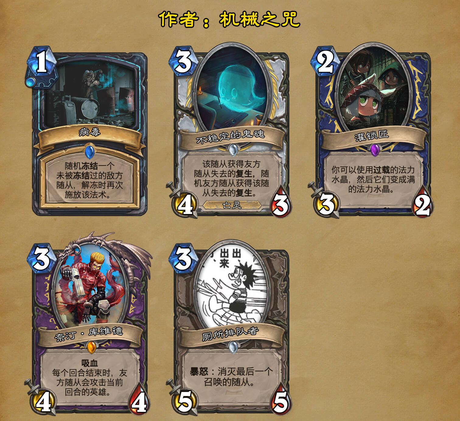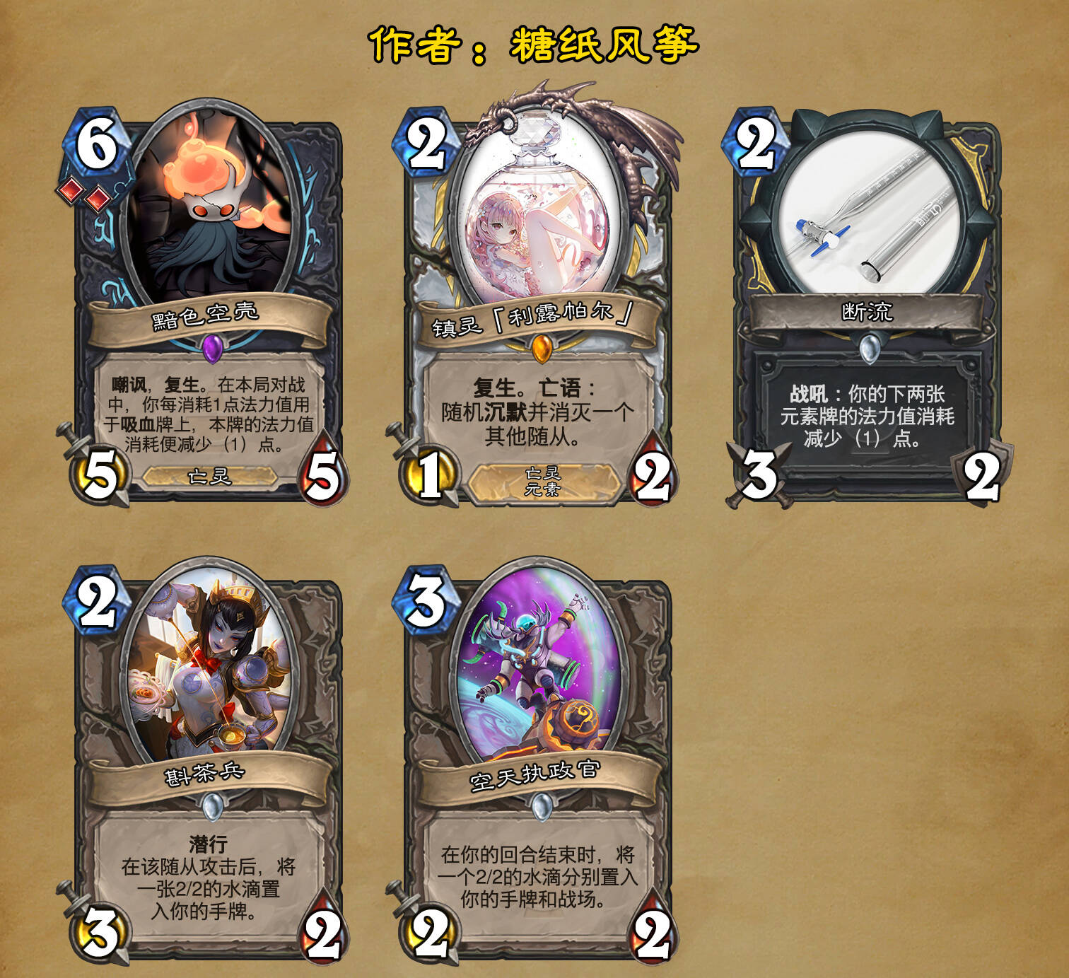 *本扩展包的设计工作于2023/01/22开始,碍于炉石国服关服,参与者的设计热情已大不如前,许多空格由他人完成;收集原画,制图,趣文则同样花费了一些时间,因此本扩展包拖延至2023/10/14才正式完工。全部的原画收集和制图工作及大部分趣文由thsd完成。